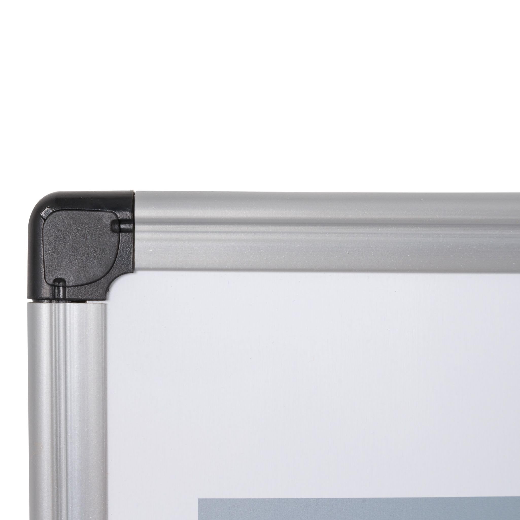 Three-in-one monthly planner provides functionality times three for efficient planning and organization. Dry-erase calendar planner provides space for lists and a bulletin surface for your important cards and notes. Compact size fits conveniently in smaller spaces for use in any working context. Magnetic Gold Ultra surface resists staining and is suitable for frequent use. Included mounting hardware works with the four-corner system to mount the board either vertically or horizontally for optimal placement. Monthly planner is perfect for cubicles, personal work spaces and more.