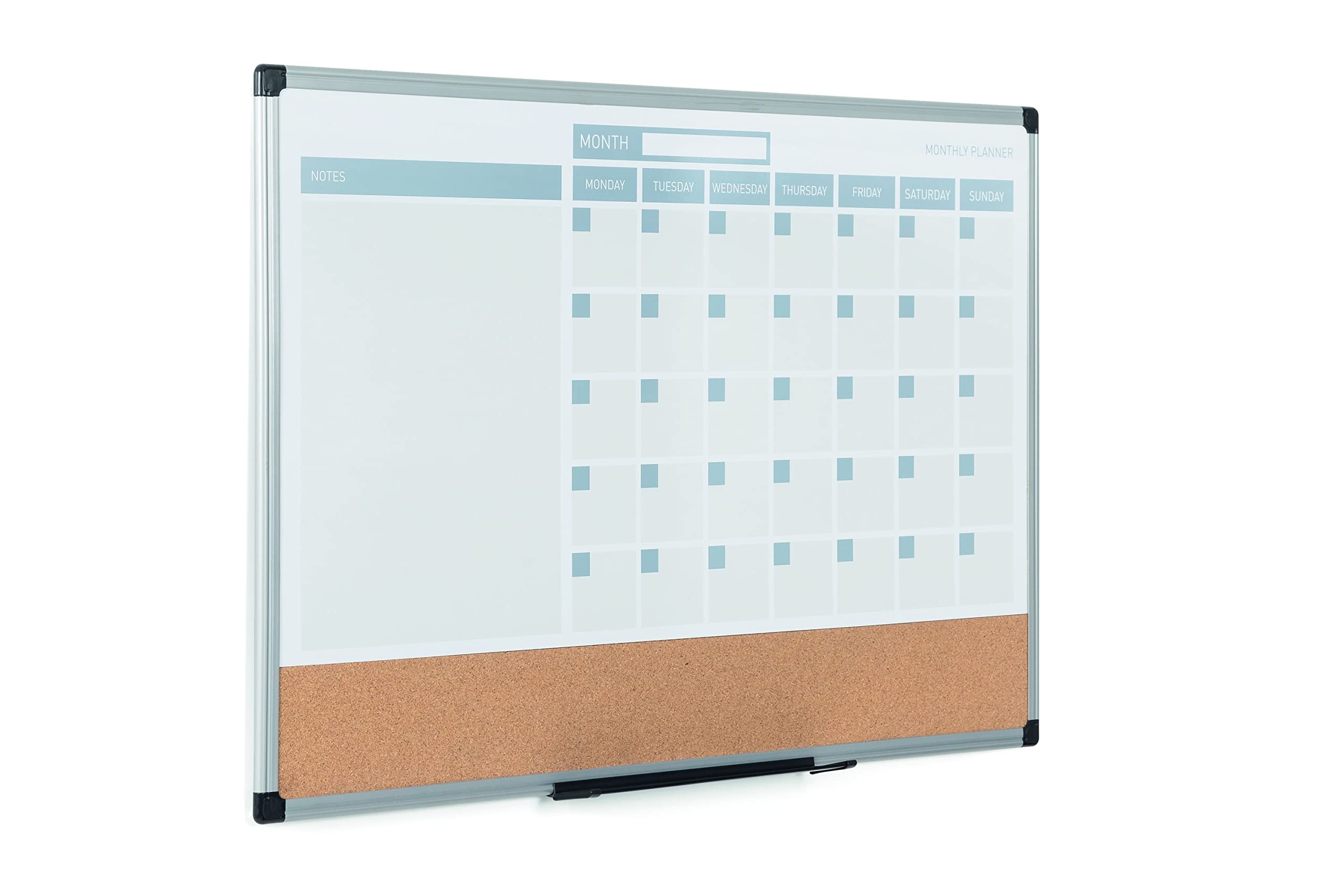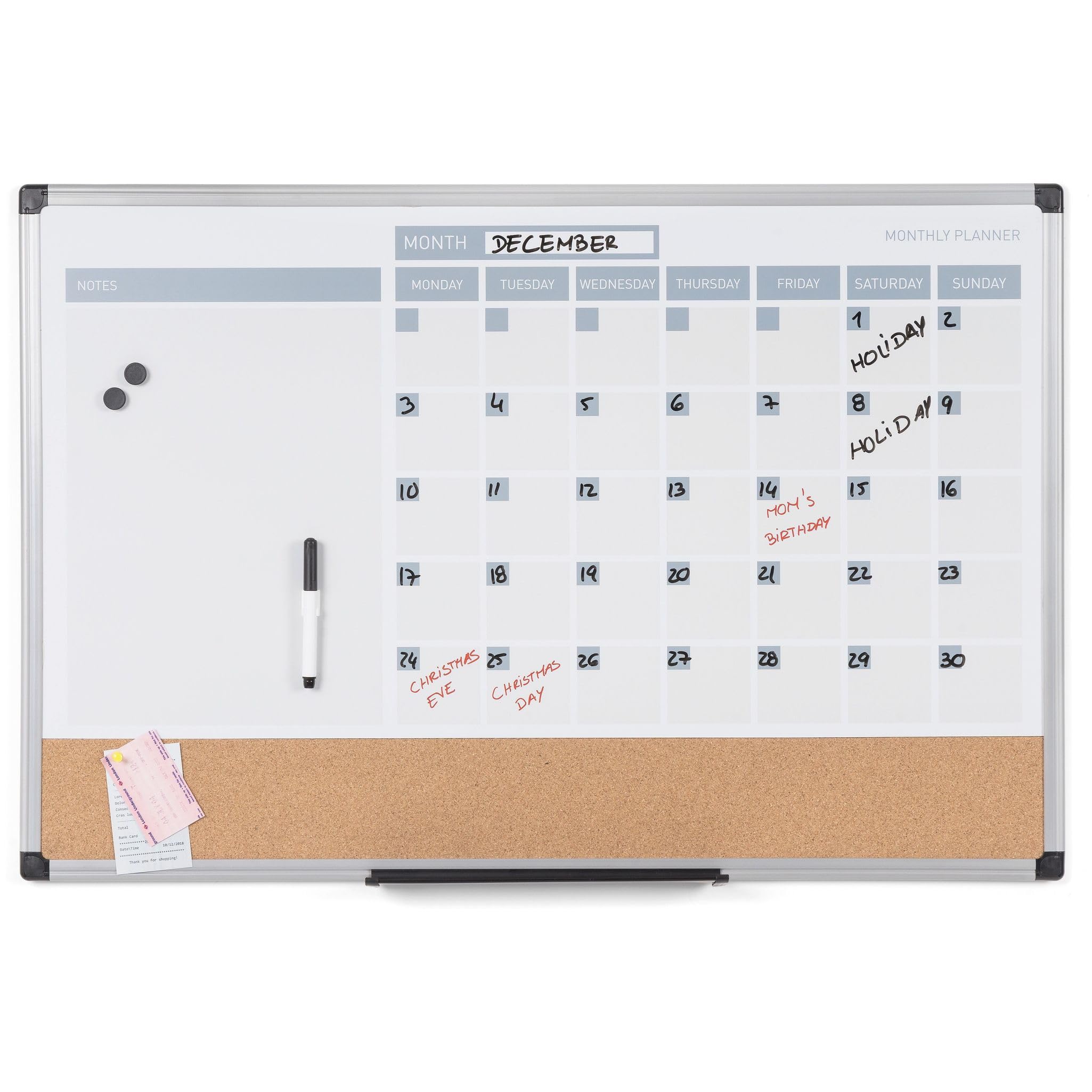 MasterVision Magnetic Dry Erase Monthly Calendar Planner Push Pin Corkboard Combo with Marker Tray, 24" x 36", Gray Plastic Frame, White, MB0707186P