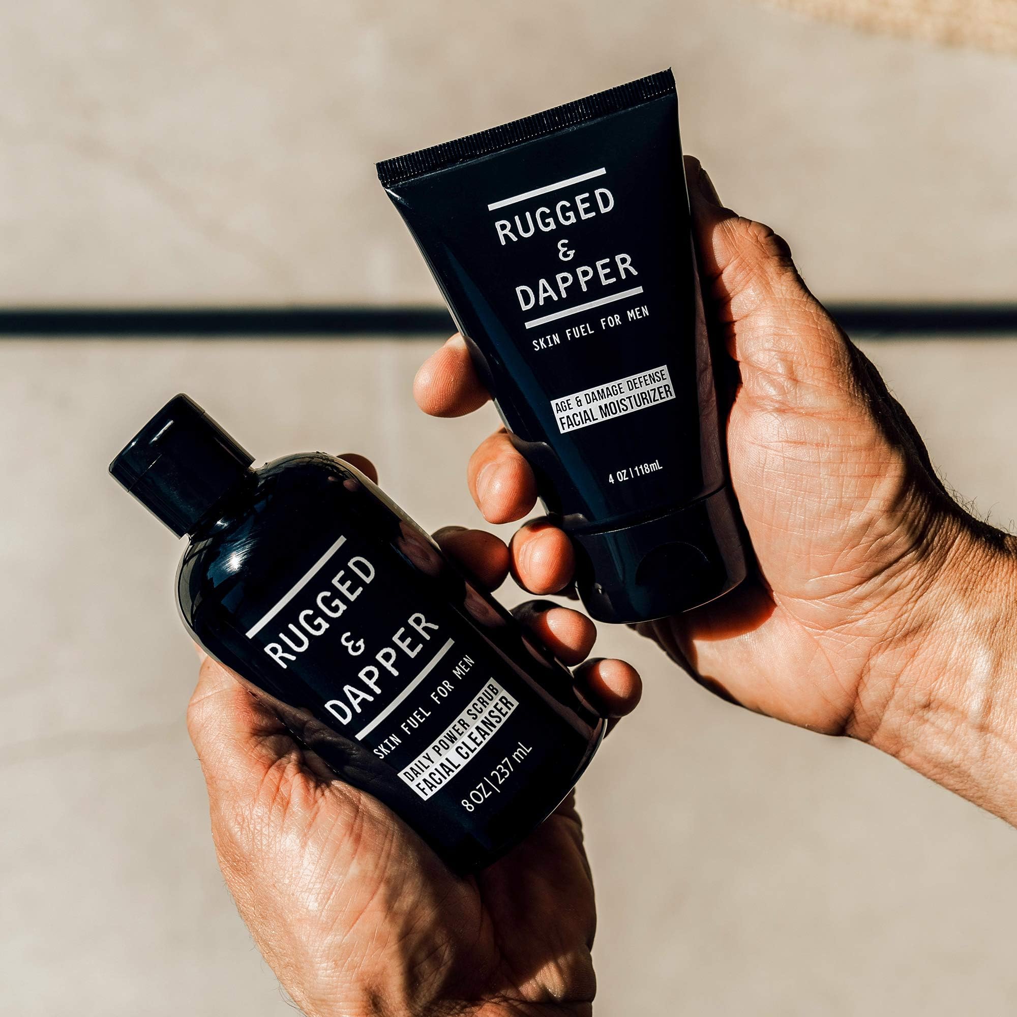 RUGGED & DAPPER Daily Duo Skincare Set for Men | Includes Age + Damage Defense Moisturizer & Daily Power Scrub Face Wash