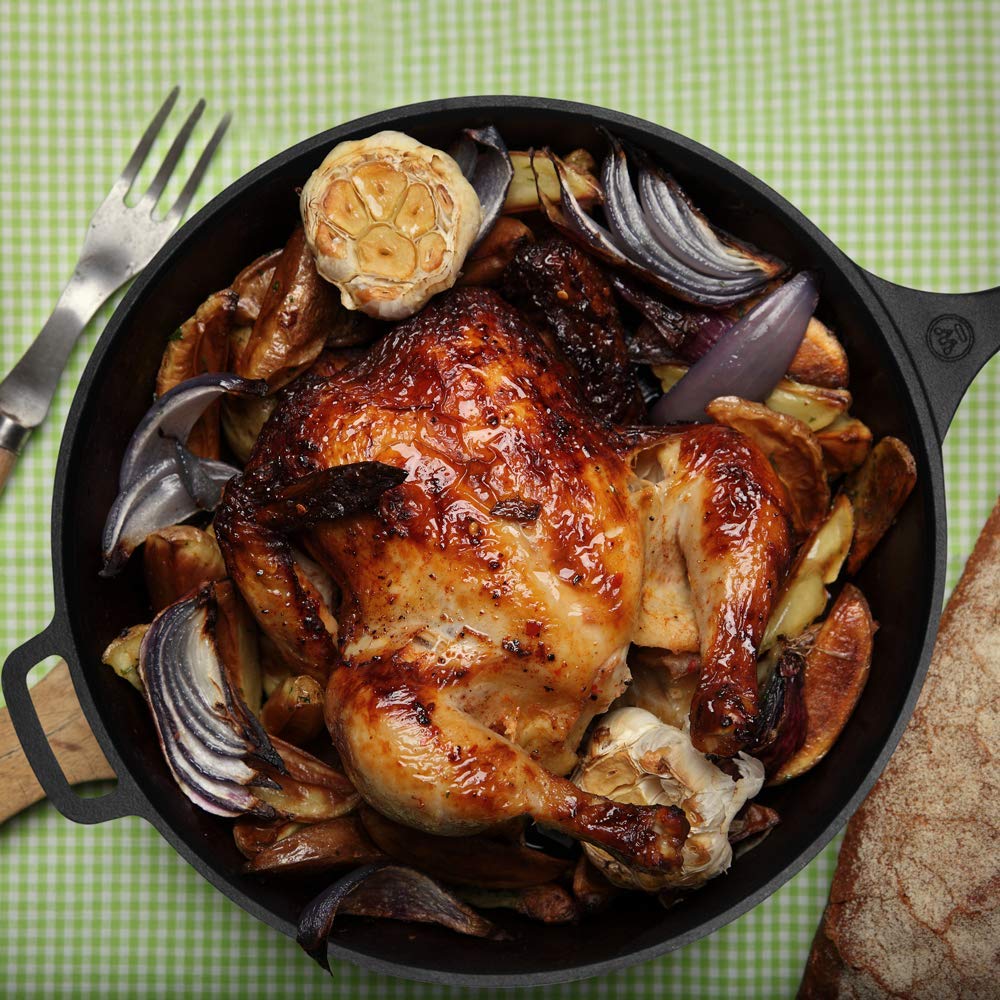 - VERSATILITY: This COMMERCIAL CHEF 15-inch cast iron skillet can be used on a stove top, in an oven, broiler or even outdoors at a campfire. Sear, bake or fry delicious meals with this cast iron skillet pan or even use as a serving dish from kitchen to table.
