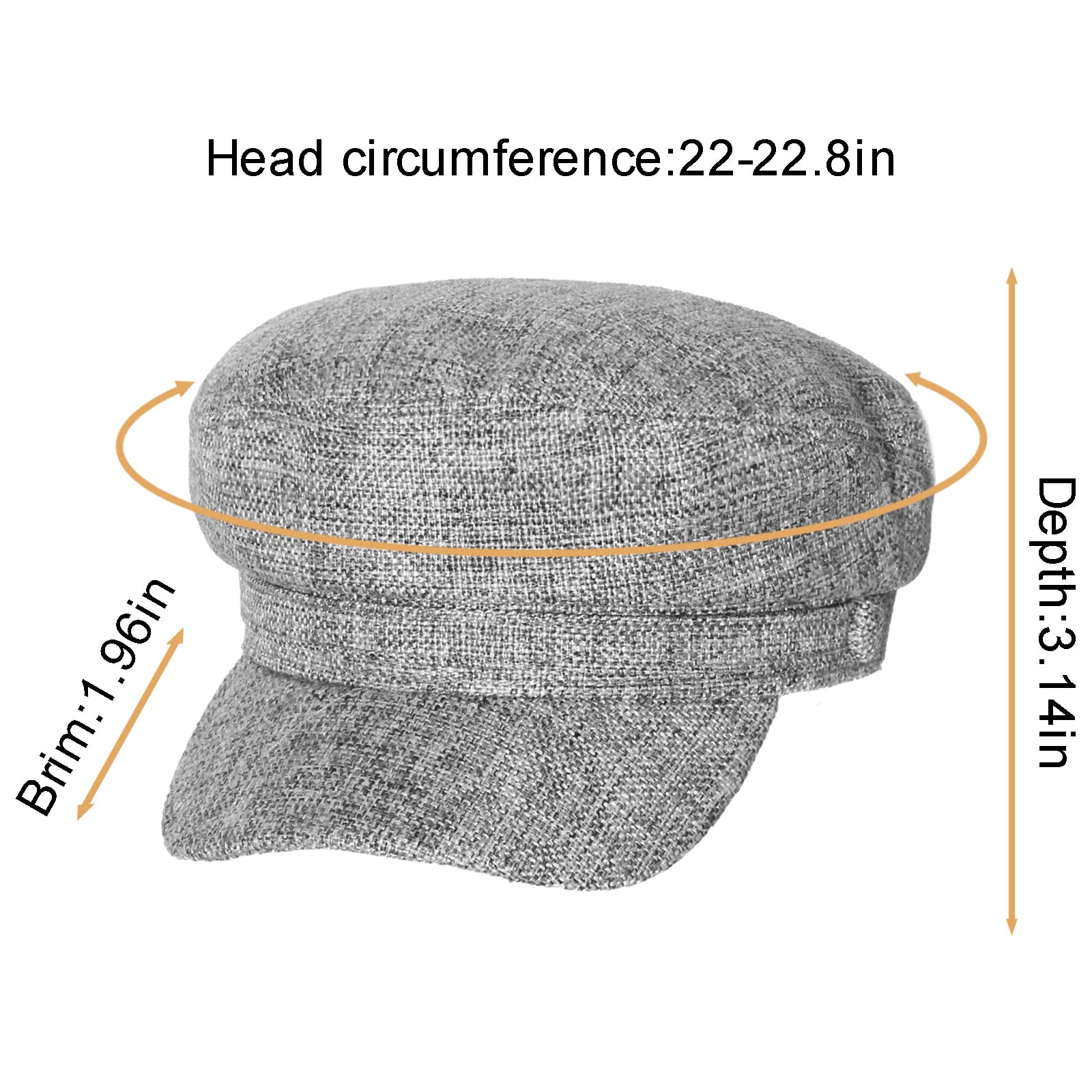 - PERFECT SIZE: Head circumference: These newsboy hats circumference 22"-22.8"( 55.5-55.8 ),Brim 1.96",Depth 3.14"