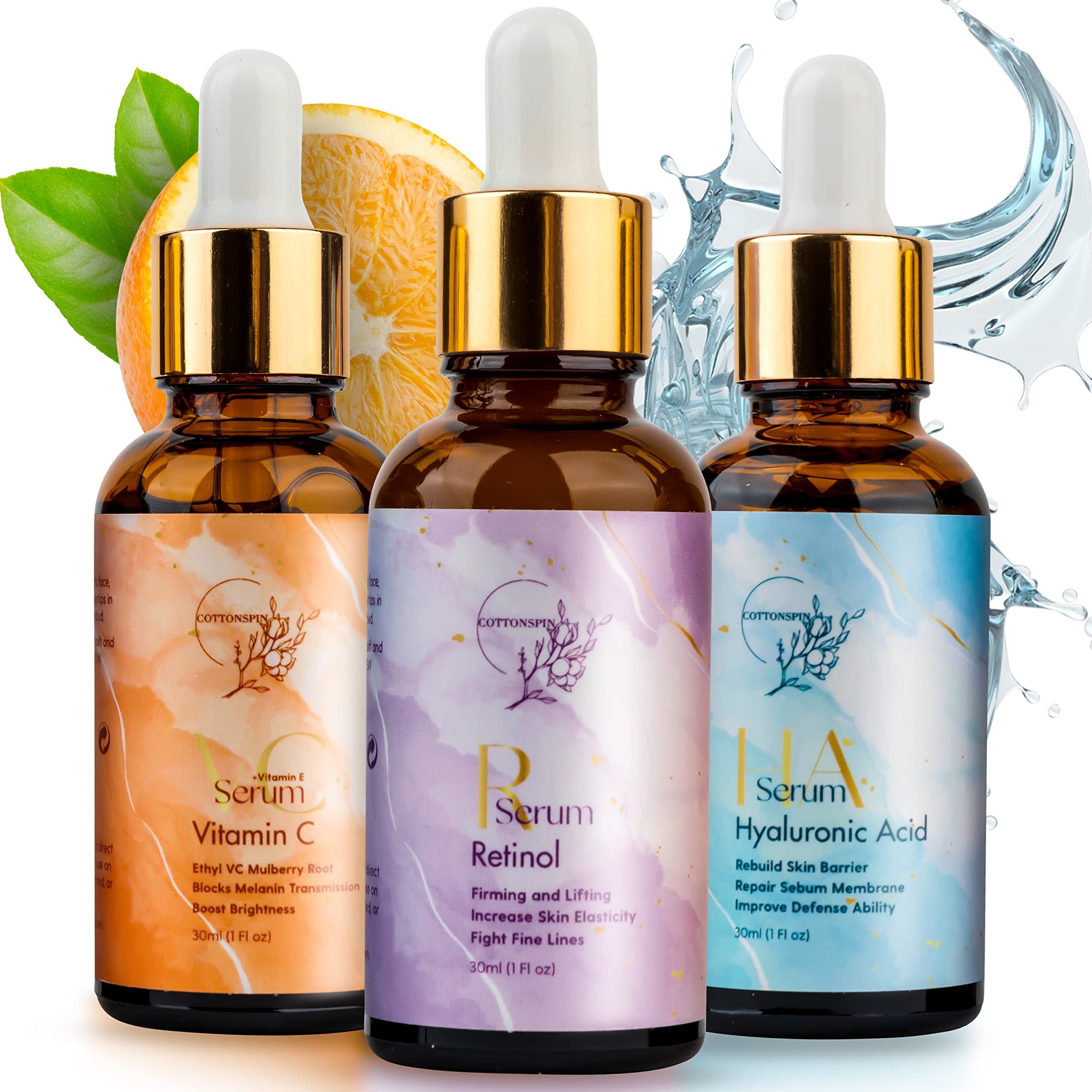 Anti-Aging Facial Serum Set. Vitamin C, Retinol & Hyaluronic Acid Serum for Brightening, Firming & Hydrating for Face. Anti-Wrinkle and Dark Circle Remover. 3x1 Fl Oz