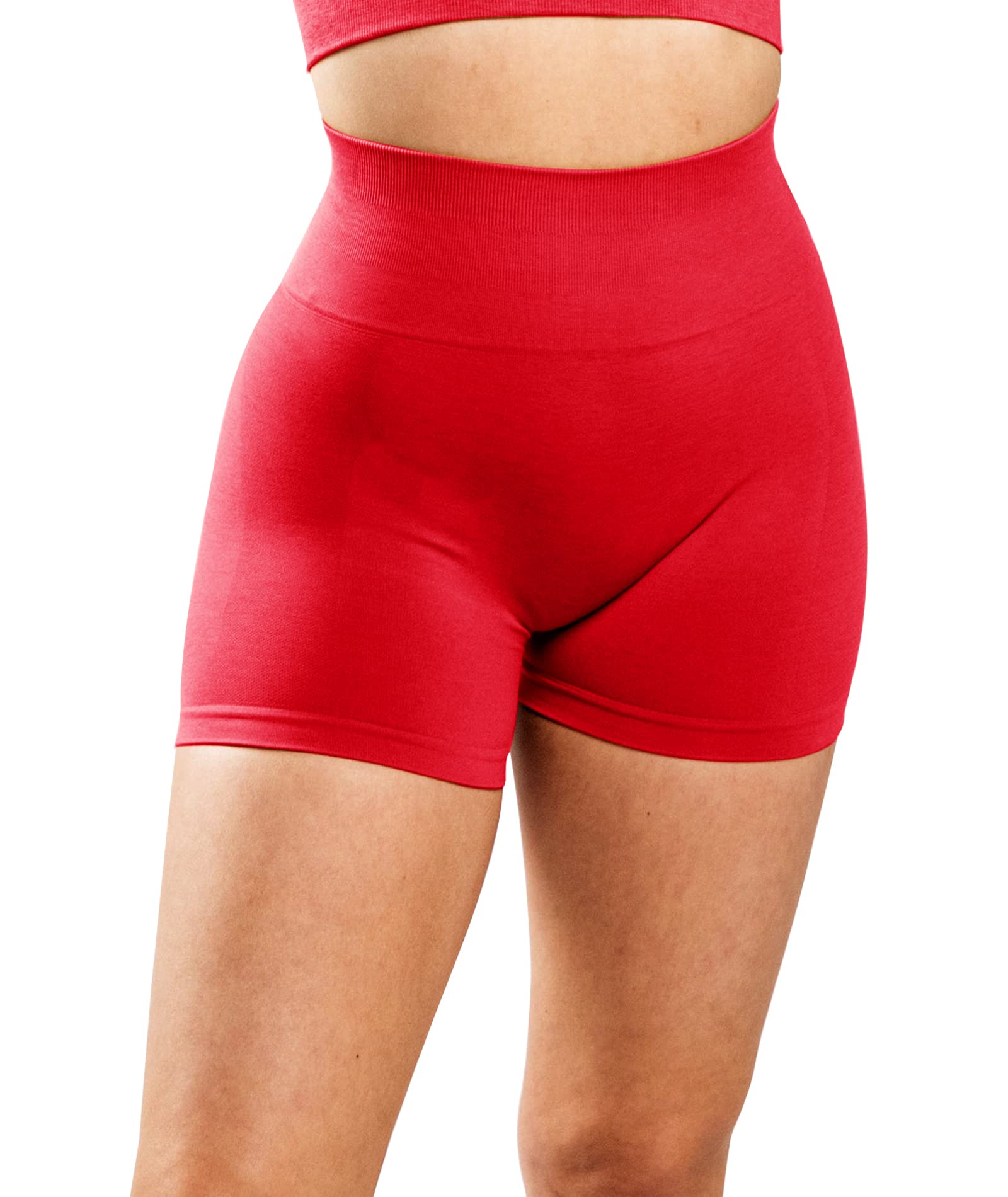 - Seamless High Waisted Gym Shorts: Slim fit tummy control squat workout shorts with a supportive ribbed waistband to hold at your waist.