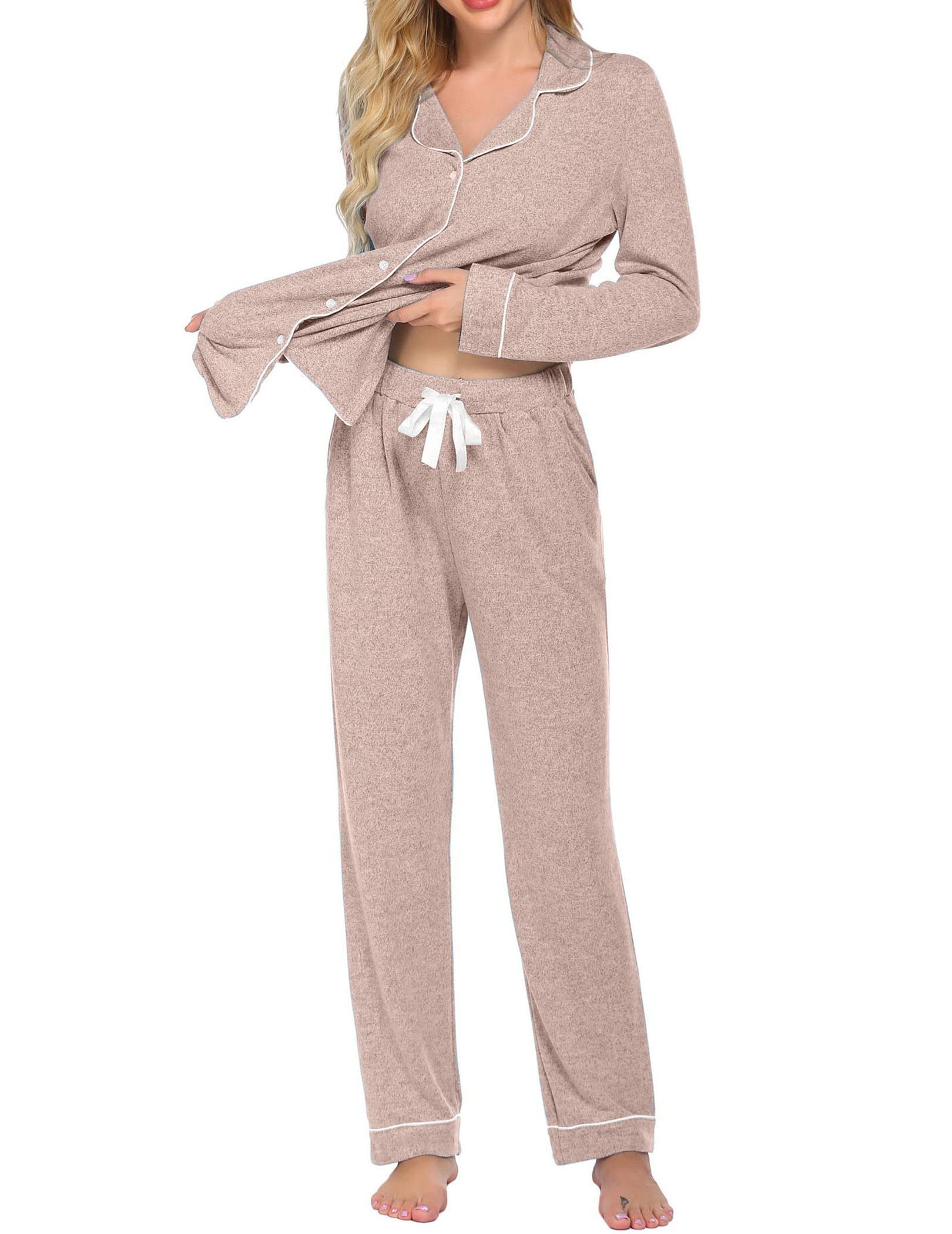 - Features:Two Piece Pajama Set featuring classic and casual loungewear style.Long sleeve sleepwear top and long pajama pants set.High quality material and this sleep set with superior stitching and perfectly-lined hems. Breathable and Comfy sleepwear set