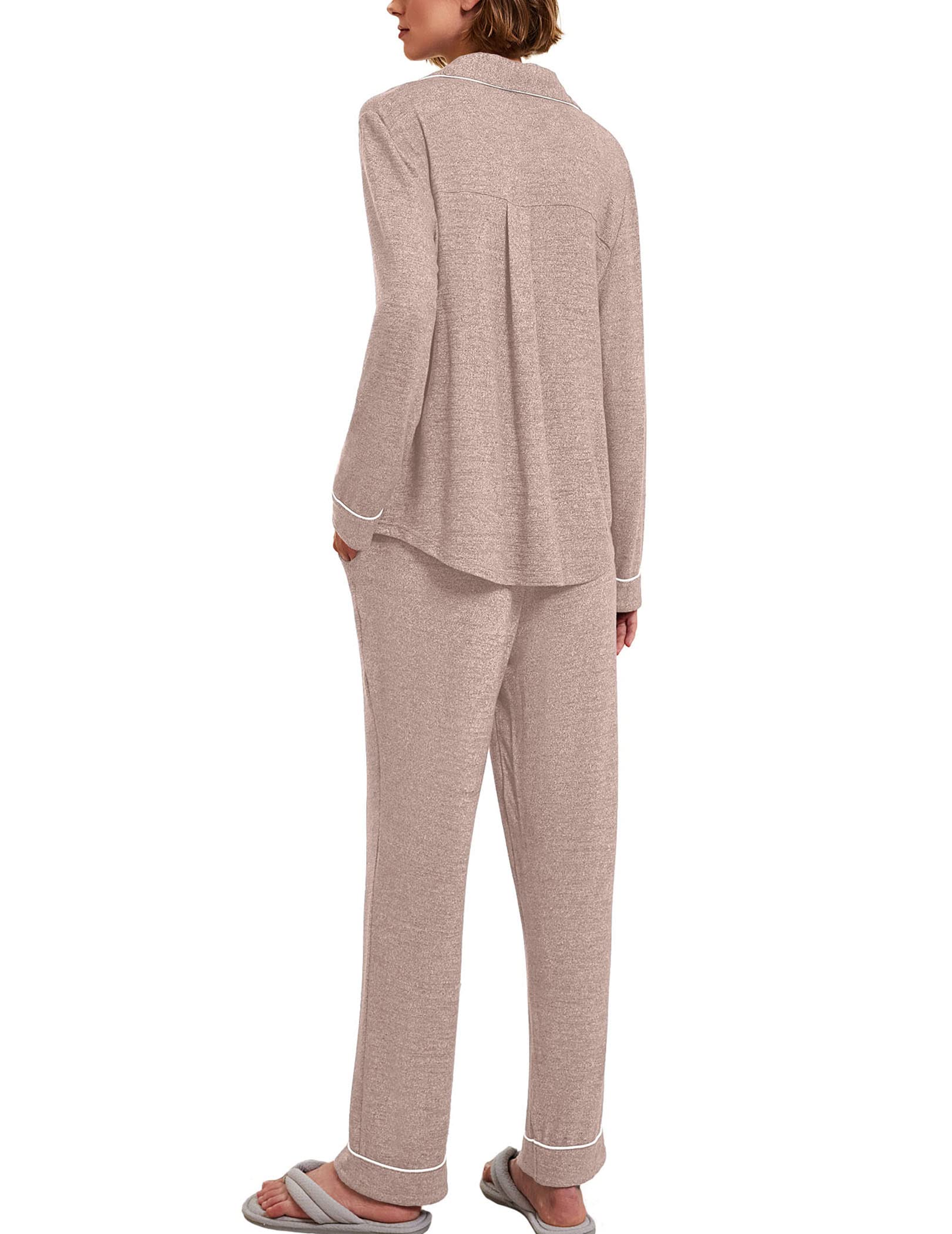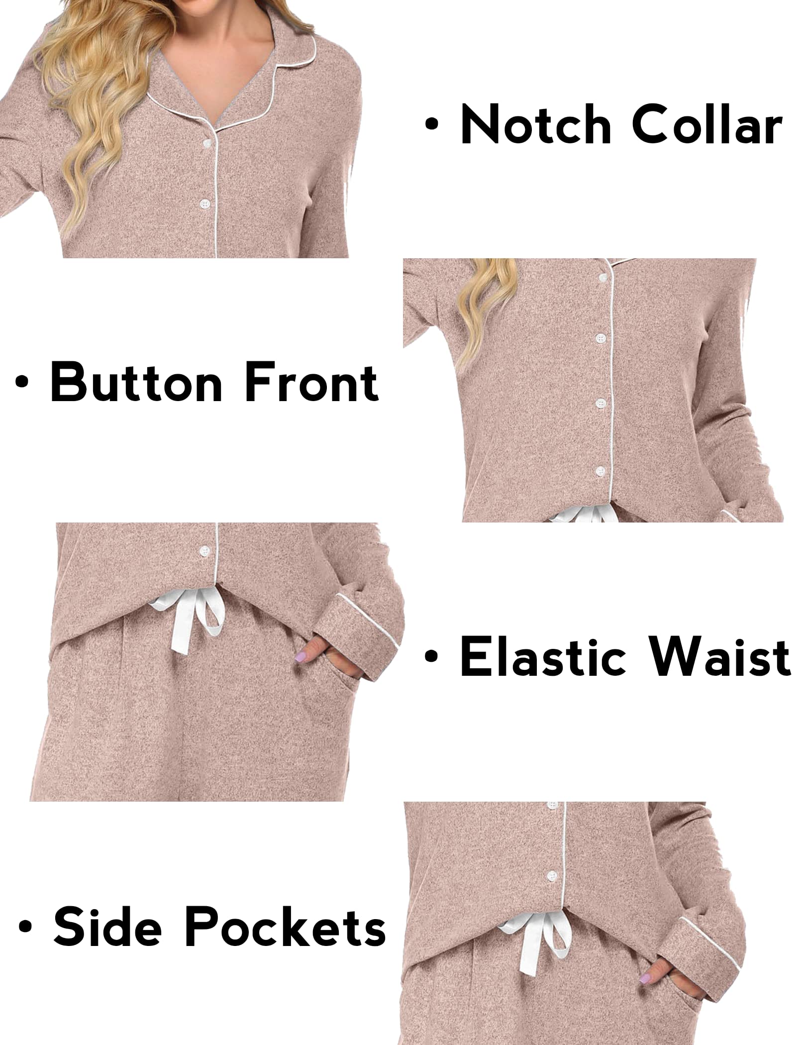 Ekouaer Women's Pajamas Long Sleeve Sleepwear Casual Button Down Loungewear Soft Pjs Set S-XXL