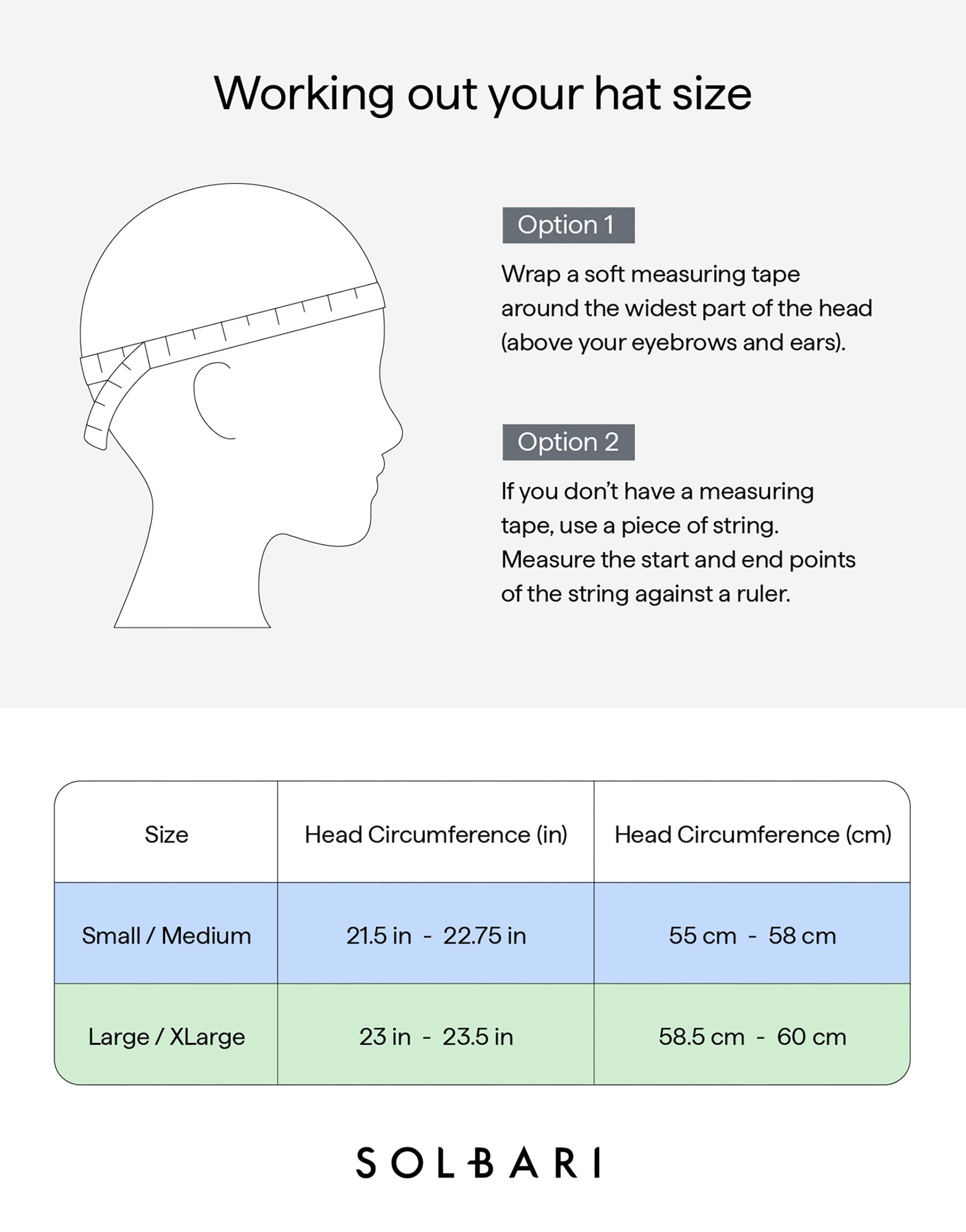 - ADJUSTABLE SIZING & CARE DETAILS: The Small / Medium fits a head circumference between 21.5"-22.75" / 55cm-58cm and the Large / X-Large fits a head circumference between 23"-23.5" / 58.5cm-60cm; Cold gentle hand washable fabric, dry in the shade, do not bleach, soak, or rub