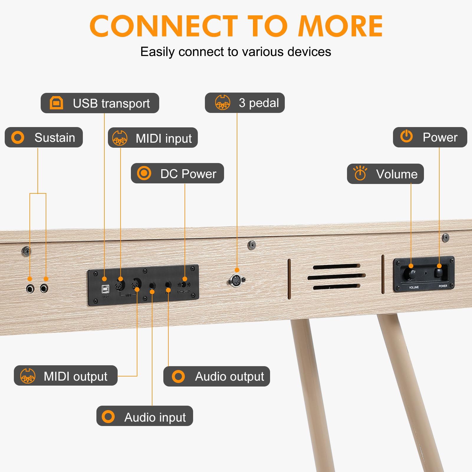 - AUTHENTIC PIANO FEEL - With 88 Key weighted hammer action keyboard,this digital piano provides a realistic playing experience that feels like playing on an acoustic piano.