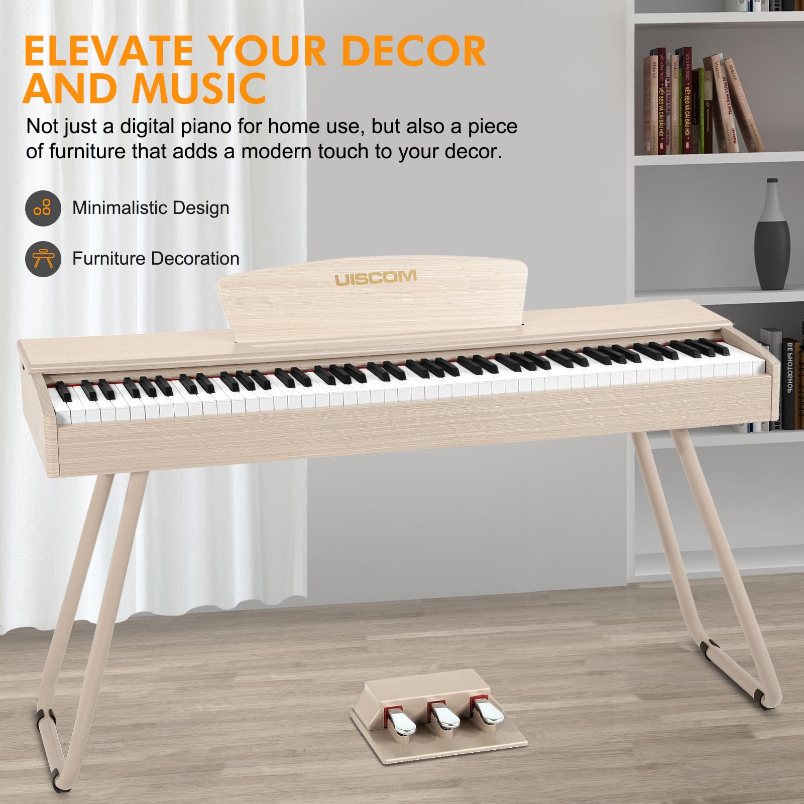 UISCOM 88 Key Weighted Keyboard Piano - Beginner Digital Piano Full Size Multi-Functional Wooden Electric Keyboard with Portable Stand | Power Adapter | Triple Pedal | MIDI Connecting