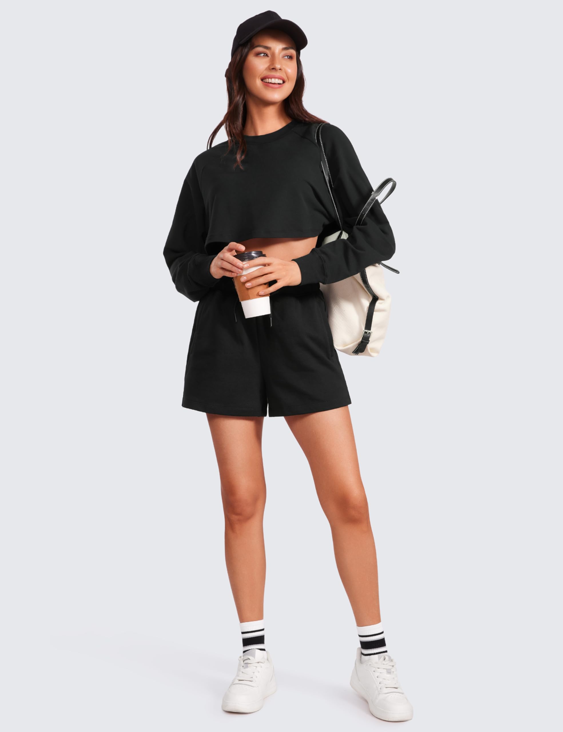 CRZ YOGA Comfy Cotton Sweat Shorts for Women Casual Summer Drawstring for Gym Lounge Workout Jersey with Pockets