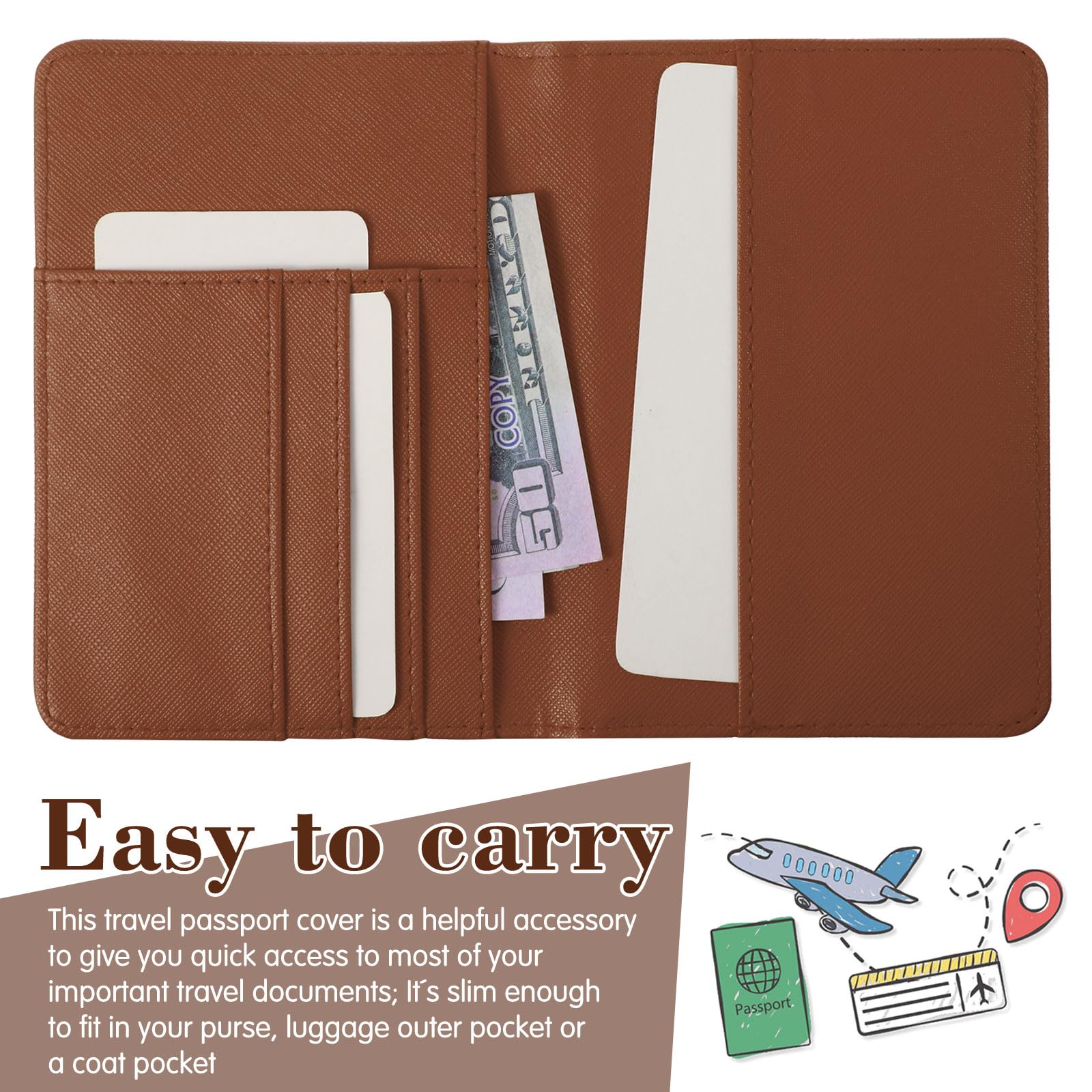 - Easy to carry: this travel passport cover is a helpful accessory to give you quick access to most of your important travel documents; It's slim enough to fit in your purse, luggage outer pocket or a coat pocket