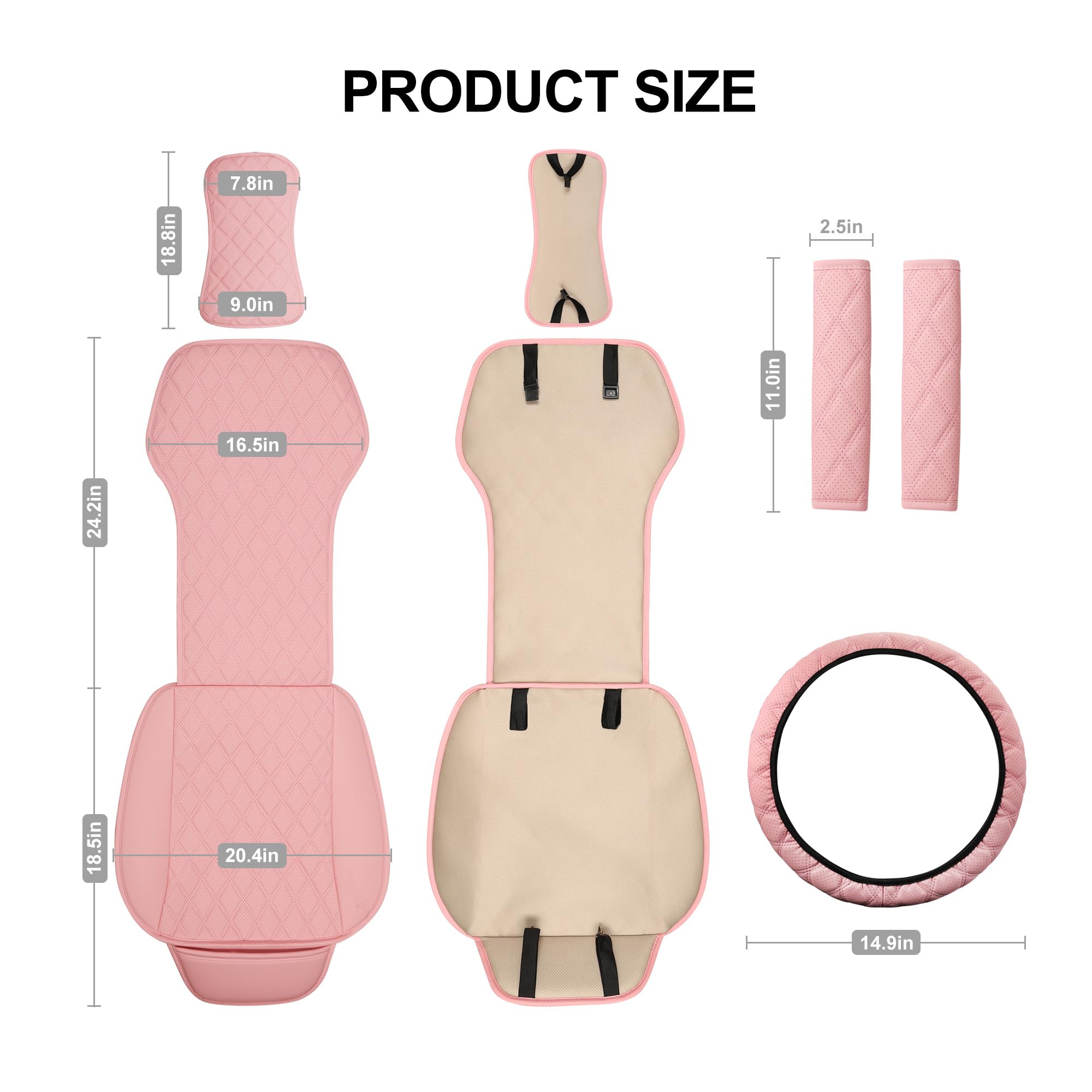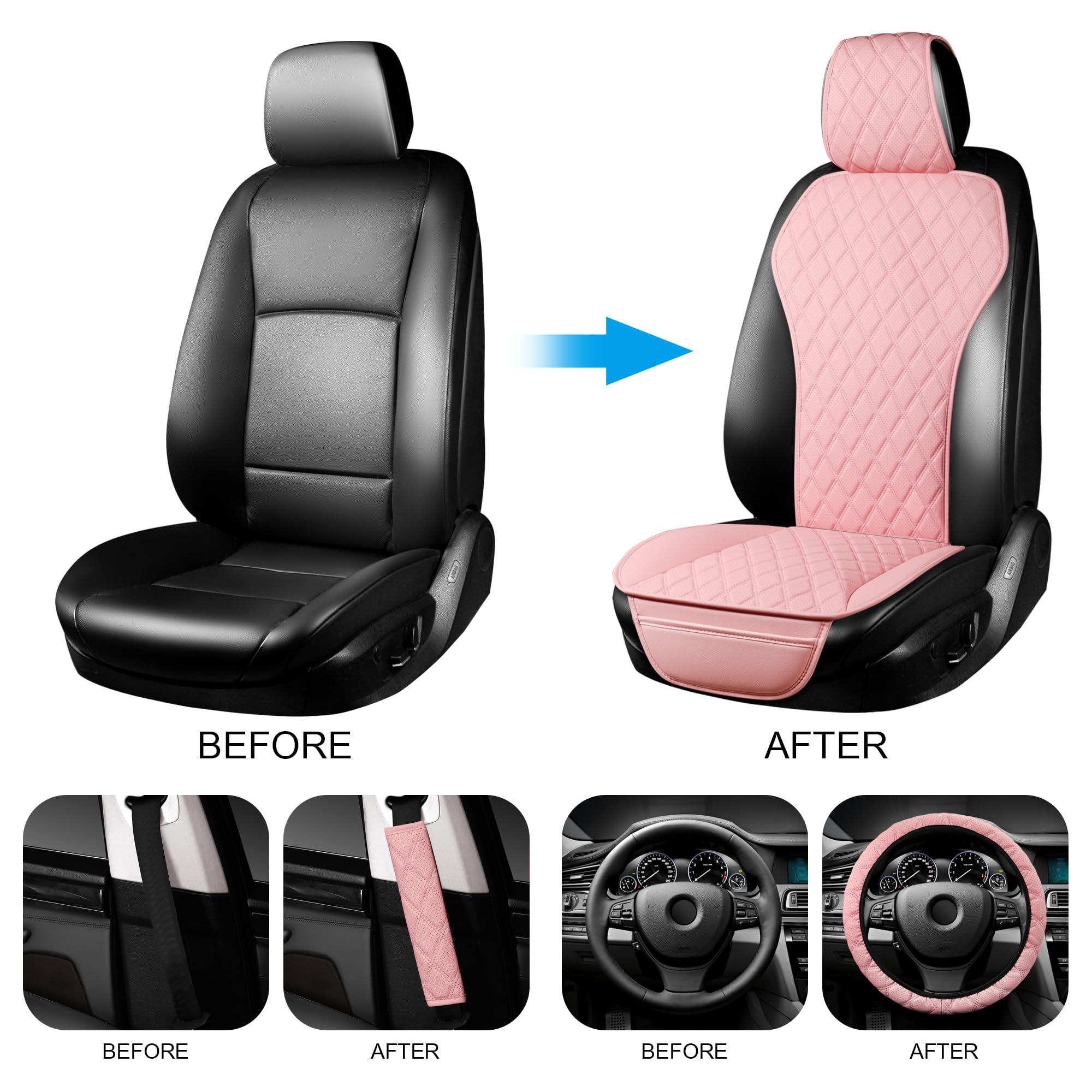 - 🌳 𝙀𝙓𝙏𝙍𝘼 𝘼𝘾𝘾𝙀𝙎𝙎𝙊𝙍𝙄𝙀𝙎 -Pink seat covers are matched with seat belt covers and steering wheel covers of same color, they achieve decorative function and protect all aspects of interior of the car. Your journey will be full of colors!