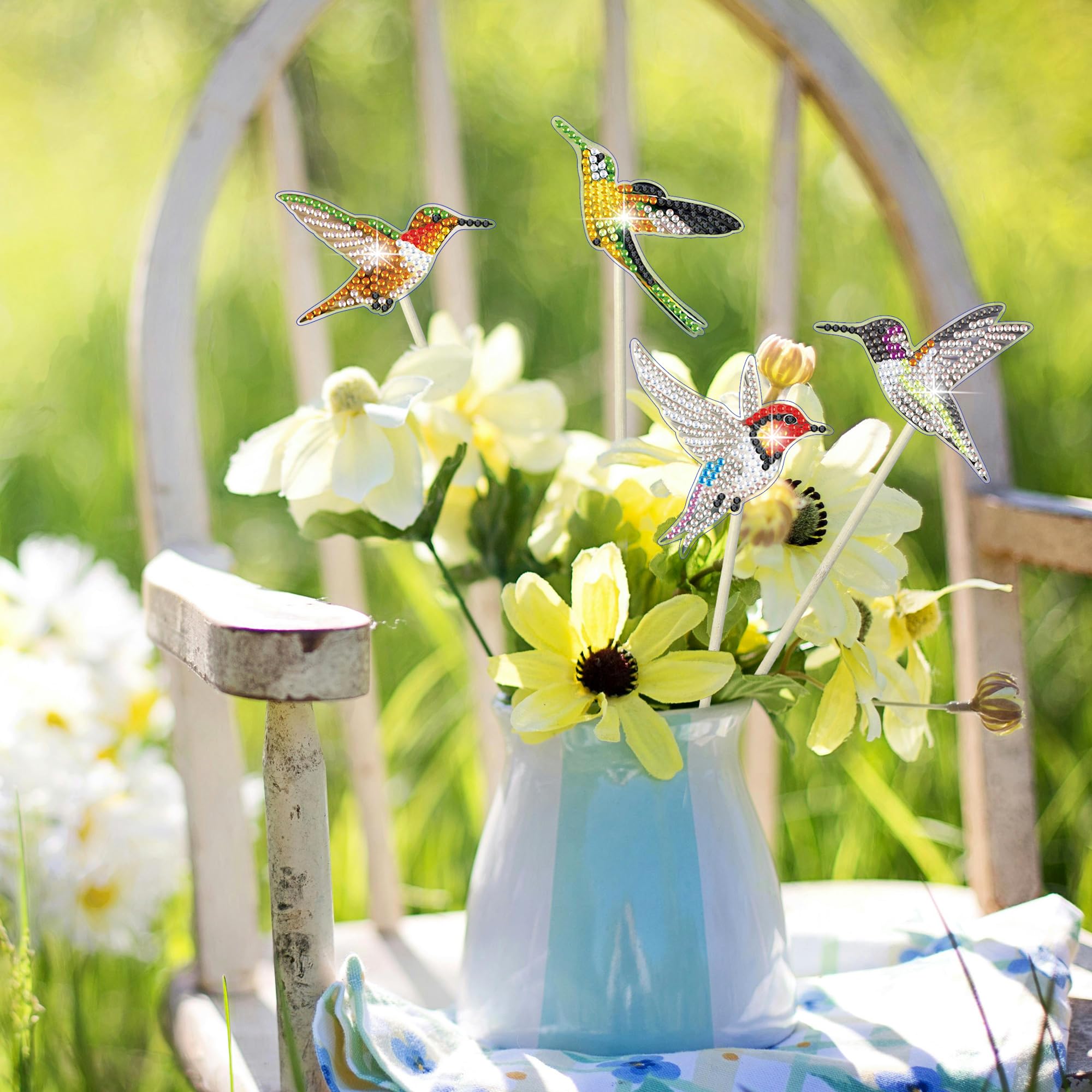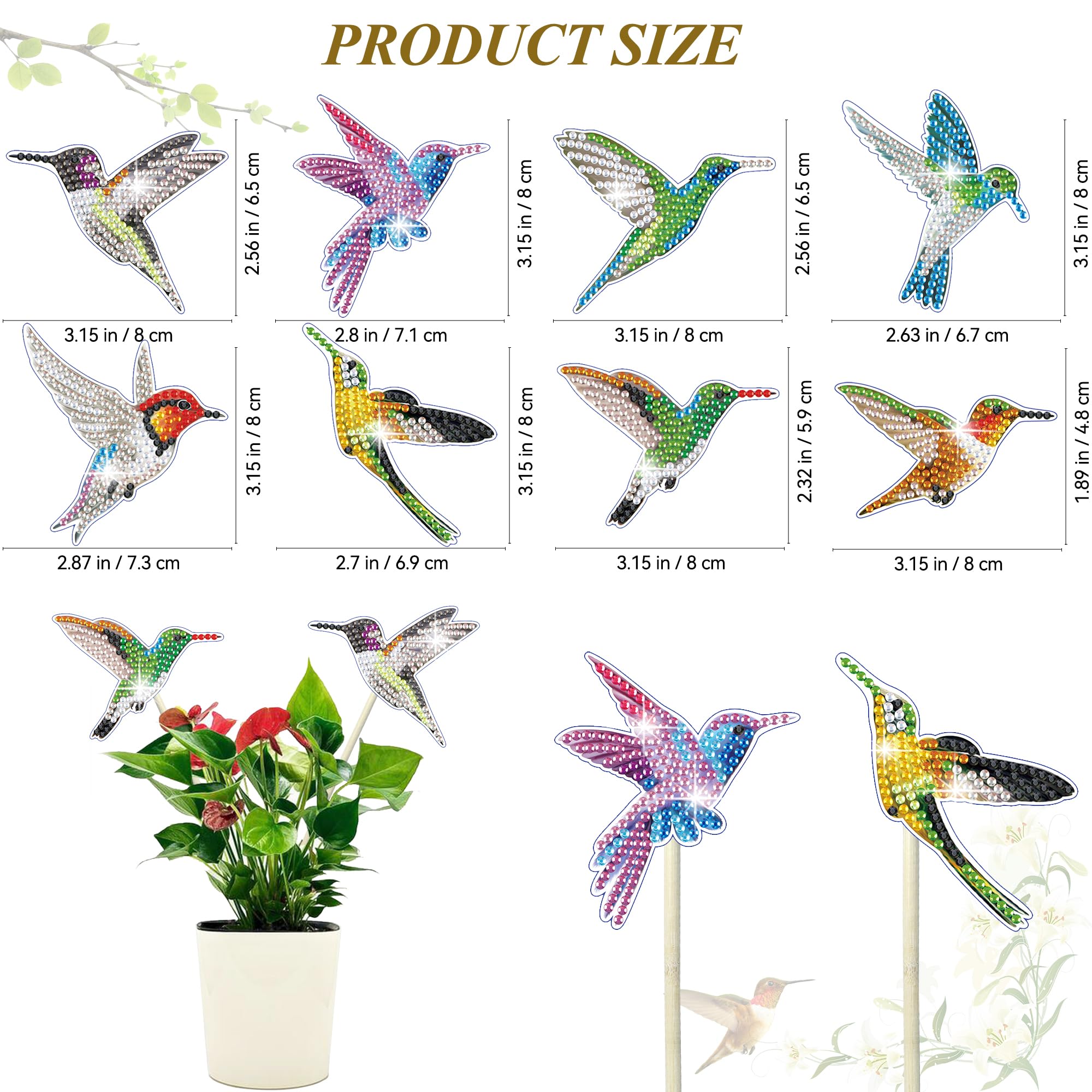 Vcekract 8 Pcs Hummingbird Diamond Painting Kits, Diamond Art Kits for Garden Decor, Garden Stakes Diamond Art Kits for Adults, Diamond Painting Small, Diamond Painting Ornaments for Family Decor