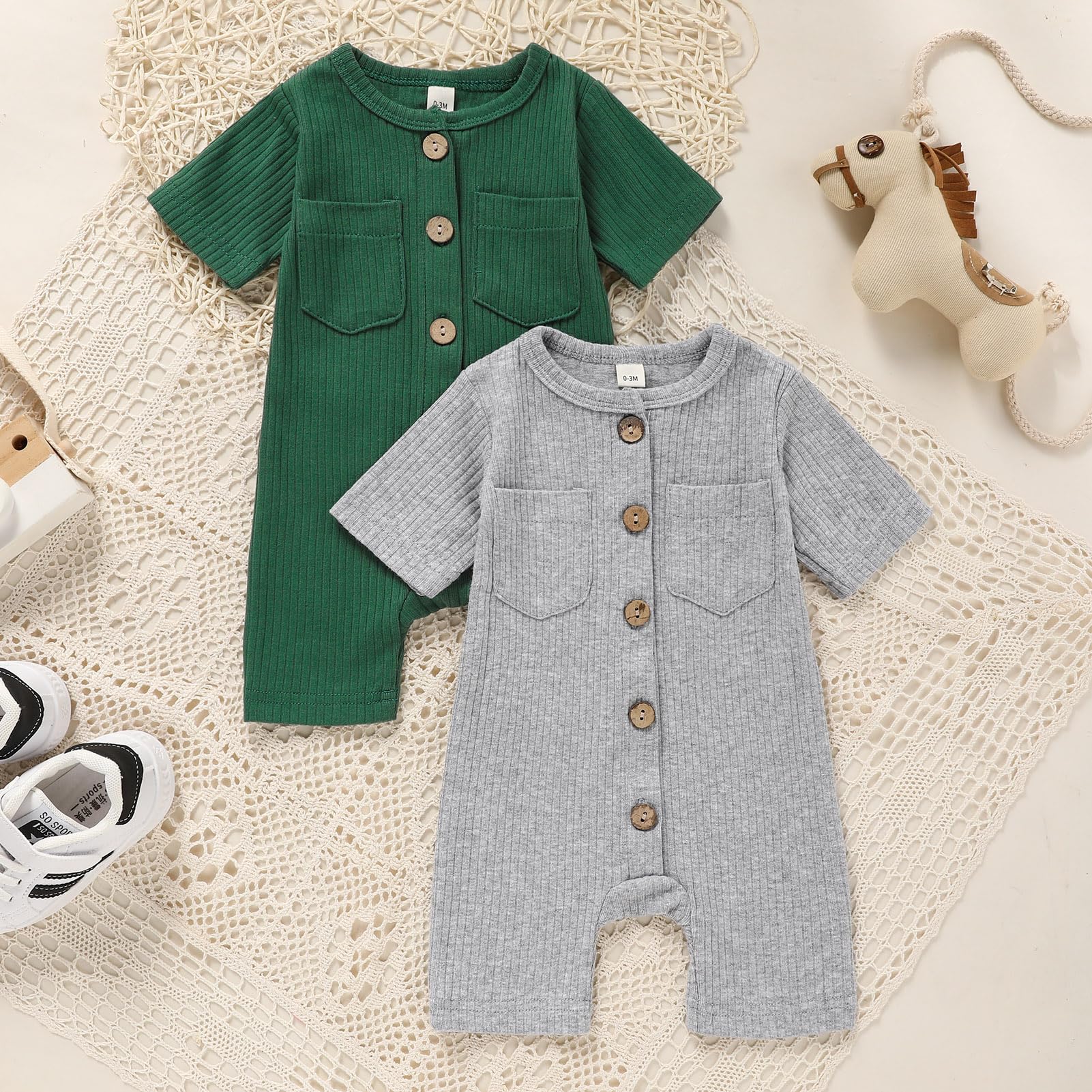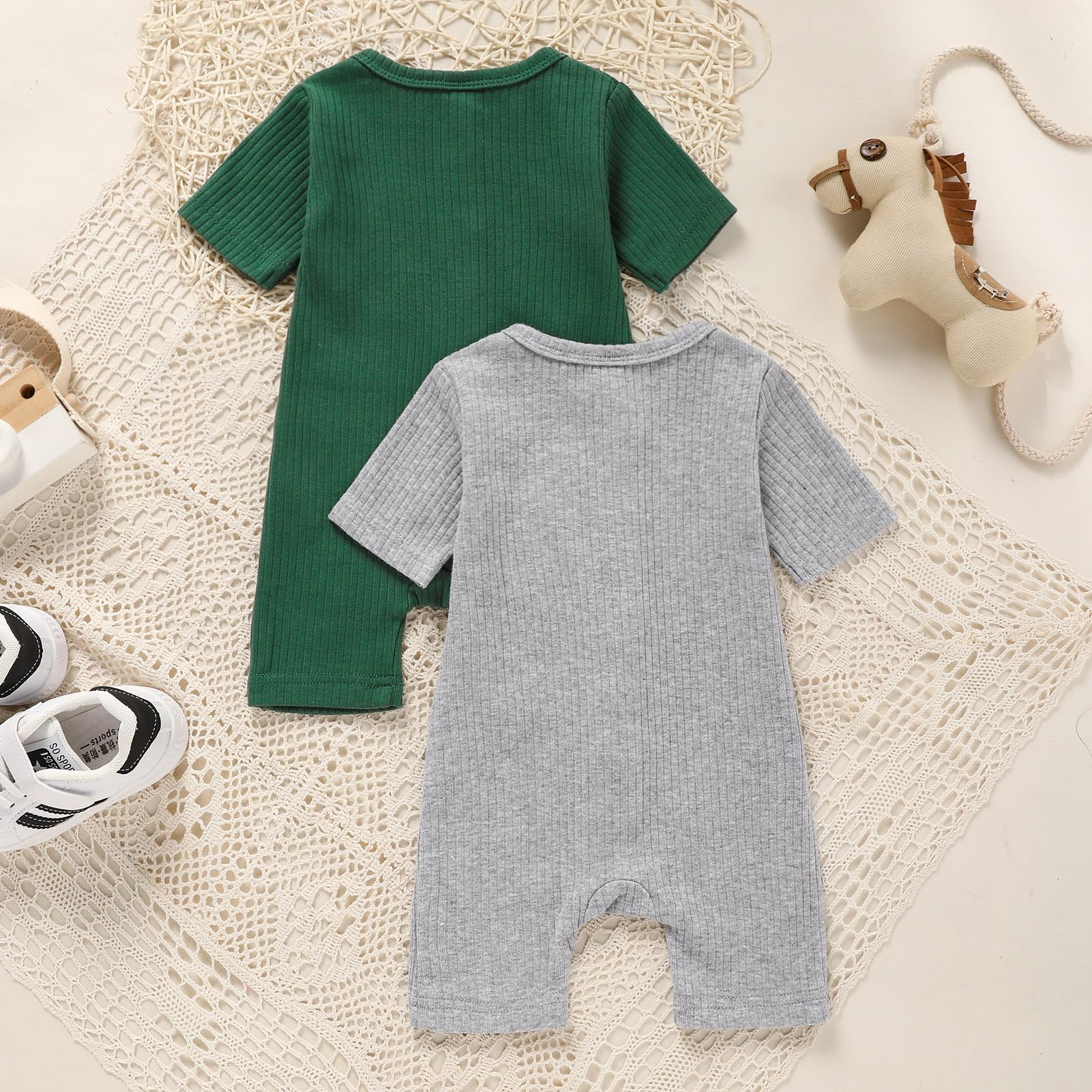 TITKKOP Newborn Baby Boy Girl Clothes 2 Pack Solid Romper Short Sleeve One-Piece Jumpsuits Outfits Sets