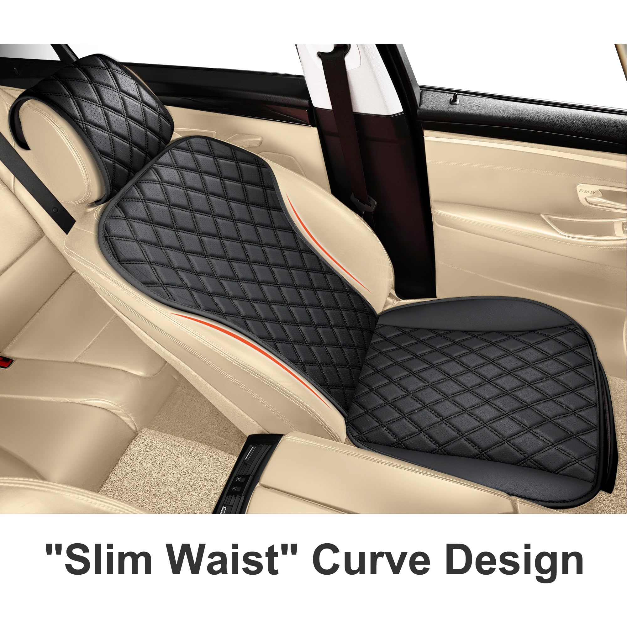 2PCS Front Car Seat Covers, Leather Seat Covers with Steering Wheel Cover and Two Seat Belt Pads, Waterproof Seat Covers for Cars Universal Fit 95% Vehicles (Black)