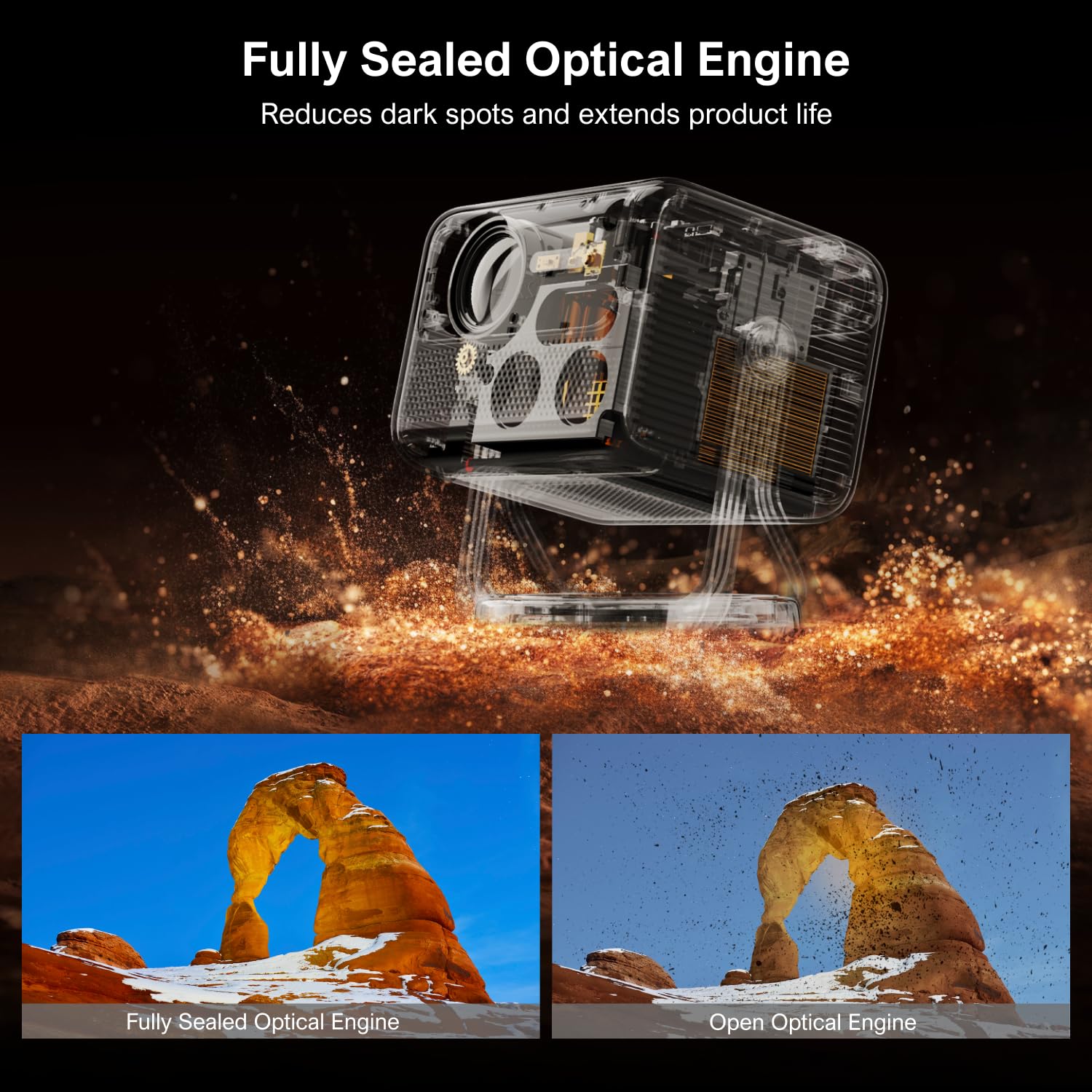 - Dust-proof Optical Design & Lifetime Support: Nova C40 projector features a crafted, fully enclosed optical engine, effectively shields against dust and reduces screen speckles, prolonging the device's lifespan for a long-lasting viewing experience. The 4K smart phone projector comes equipped with HDMI / USB / AV / Audio ports, ensuring stable connections to PCs, TV sticks, Switch, and laptops. We value your feedback and are always here to help.