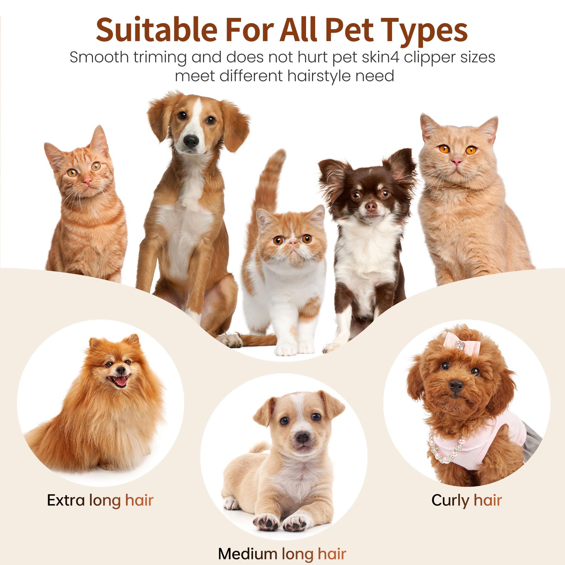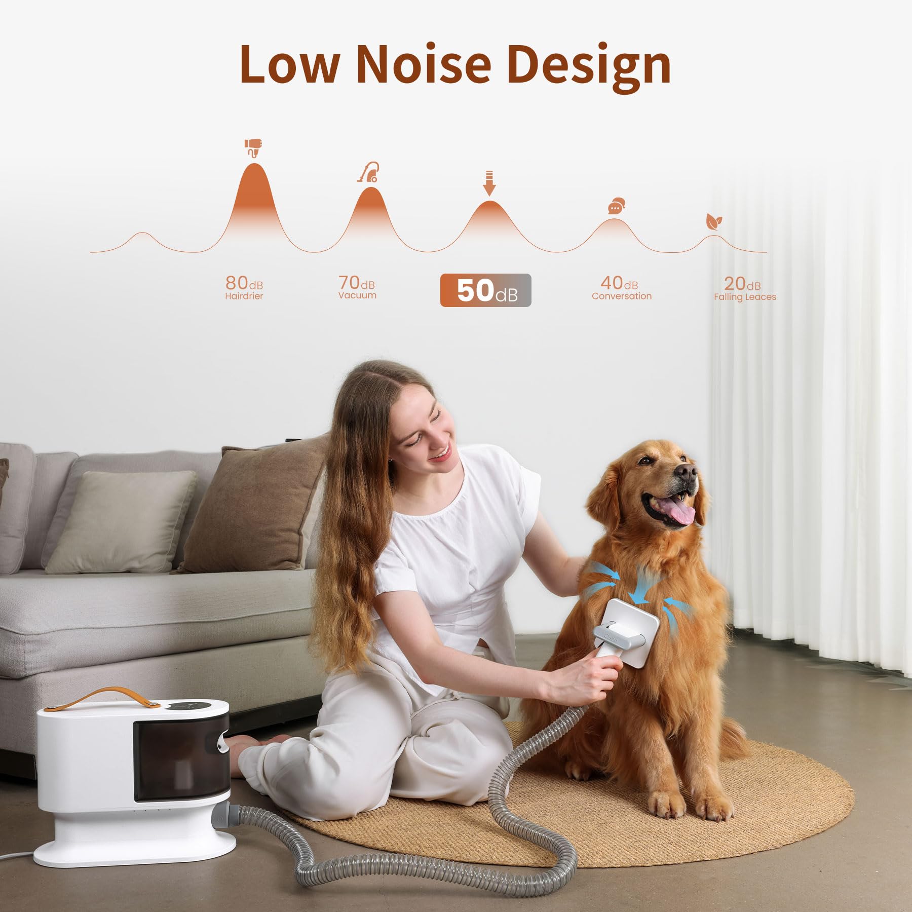 - Low Noise Technology- Our pet grooming vacuum for dogs features a low-noise design to keep pets at ease, the noise is as low as 50db, effectively protecting pets' sensitive hearing. Novice pets can adapt slowly from the first gear. We suggest grooming your pet with our brush before trimming pet hair, treating your pet with little snacks to avoid making your pet nervous because of vacuuming noise, which conclusively makes the grooming experience even more enjoyable.