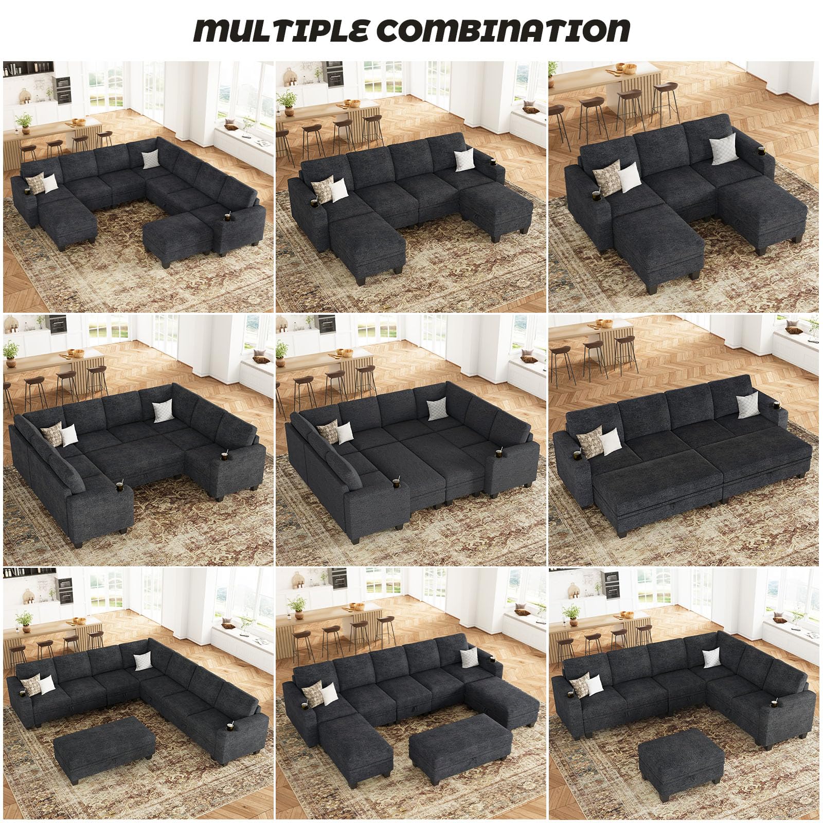 - Cup Holder Design: Modular sectional sofa with cup holder. Conveniently equipped with a 3.35-inch wide and 2.35-inch deep cup holder on the armrest, it keeps your beverages within easy reach, ensuring comfort without compromise.
