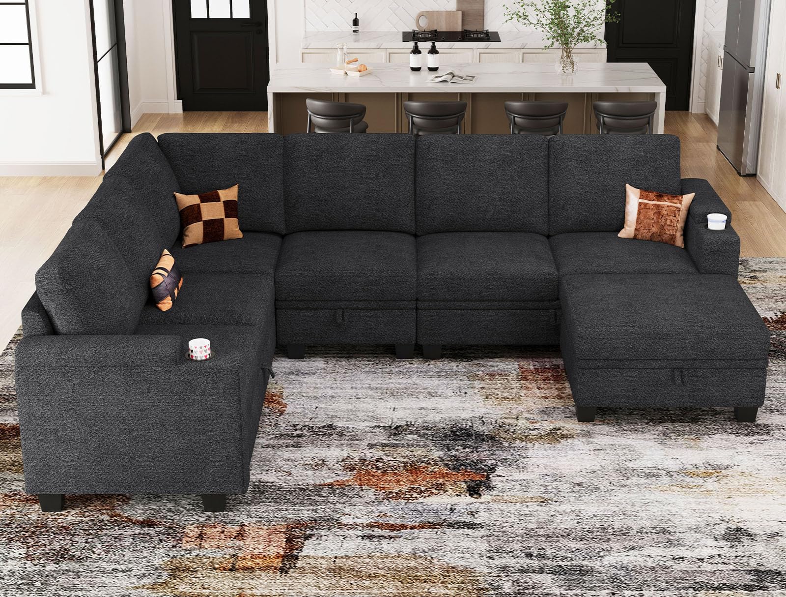 Our modular sectional couch with storage lets you design your seating setup exactly how you want it. Each module can be moved and rearranged, transforming from lounging in an L shaped sectional couch to hosting in a spacious U shaped couch. The possibilities are endless.Sectional sofa with storage. Each sectional couch boasts convenient storage compartments to neatly tuck away blankets, pillows, toys, and other items. Discover the convenience of our modular sofas with integrated storage!