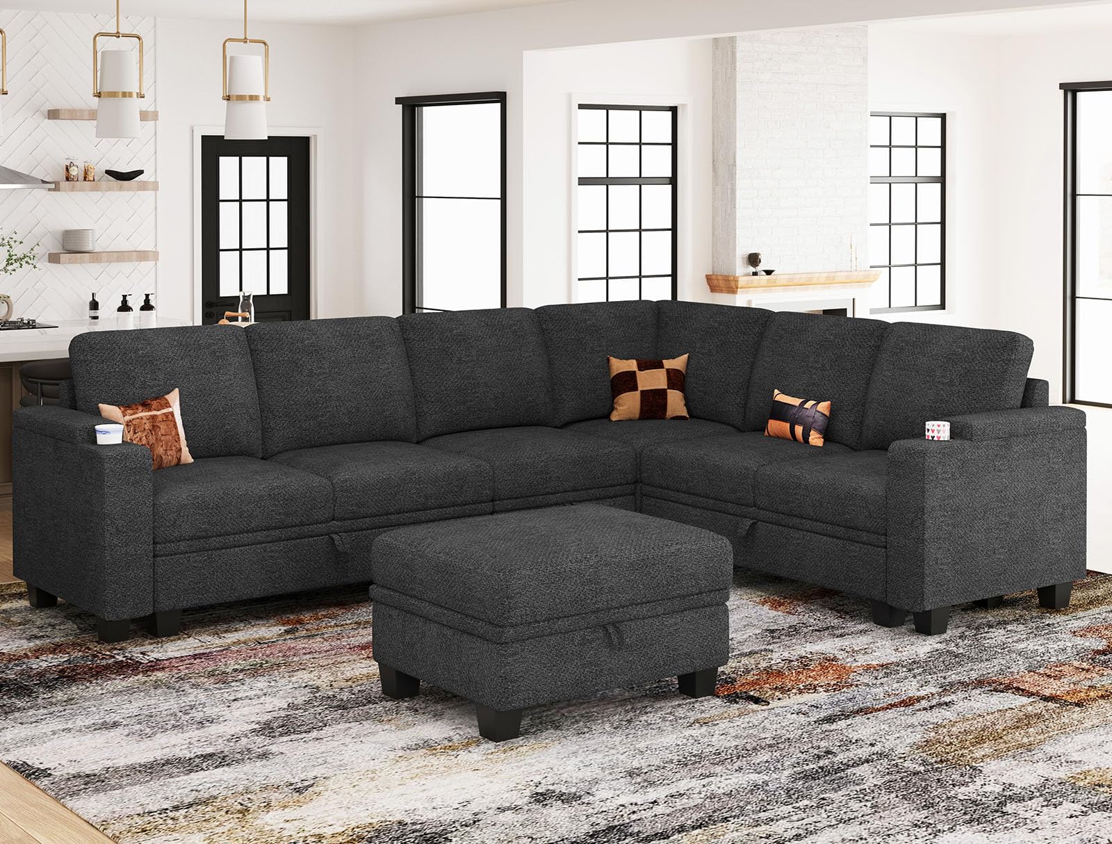 Belffin Modular Sectional Sofa with Storage L Shaped Couch with Chaise Convertible Corner Sectional Couch for Living Room. Dark Gray