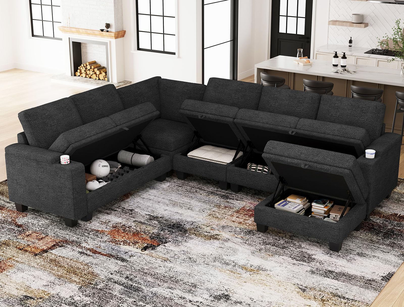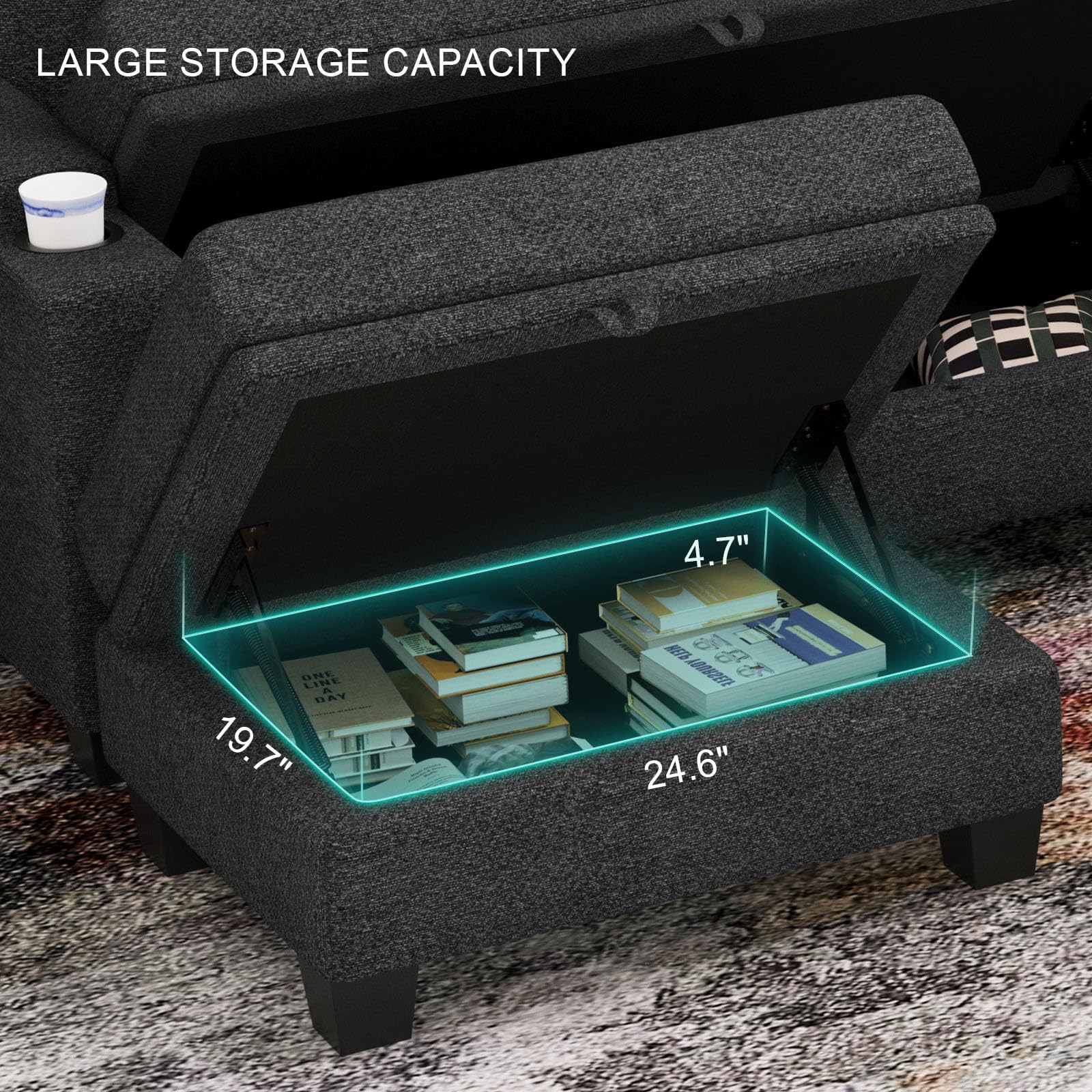 - Space Saving: Sectional couch with storage. Including hidden storage areas within the single seat (C), loveseat sections (B), standing ottoman (E), and large ottoman (F), Our modular sofa offers ample room for storing blankets, pillows, and essential items.