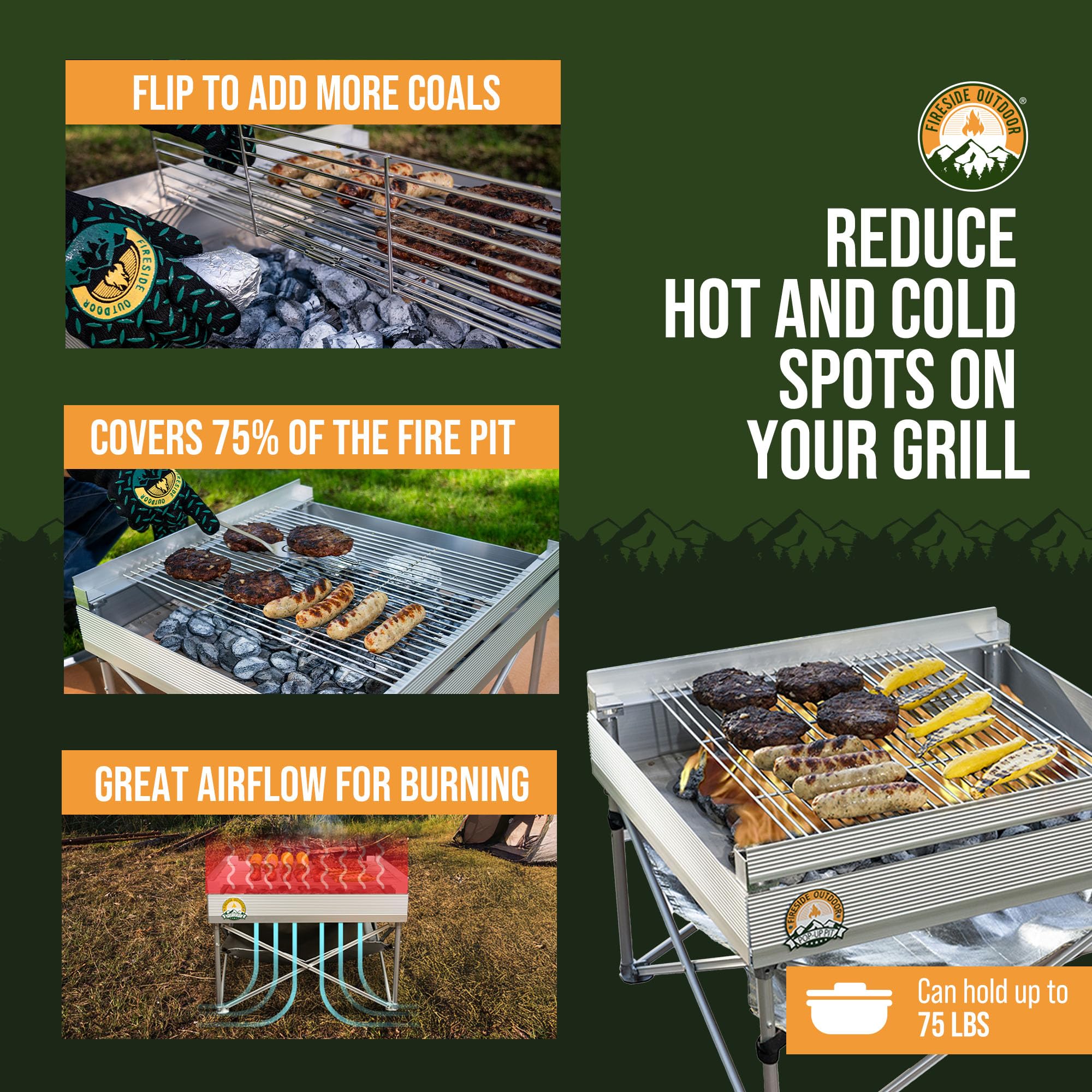 - EXPERIENCE OVER 350 SQUARE INCHES OF COOKING SPACE: Our fire pit offers over 350 square inches, providing enough room to cook 16 burgers at once. Whether you're grilling with a bbq grill, charcoal grill, or using your portable fire pit, you’ll have ample space to feed your group while enjoying your outdoor fire pit. Ideal for camp grill sessions or campfire cooking, this outdoor grill offers ample room for all your outdoor gatherings.
