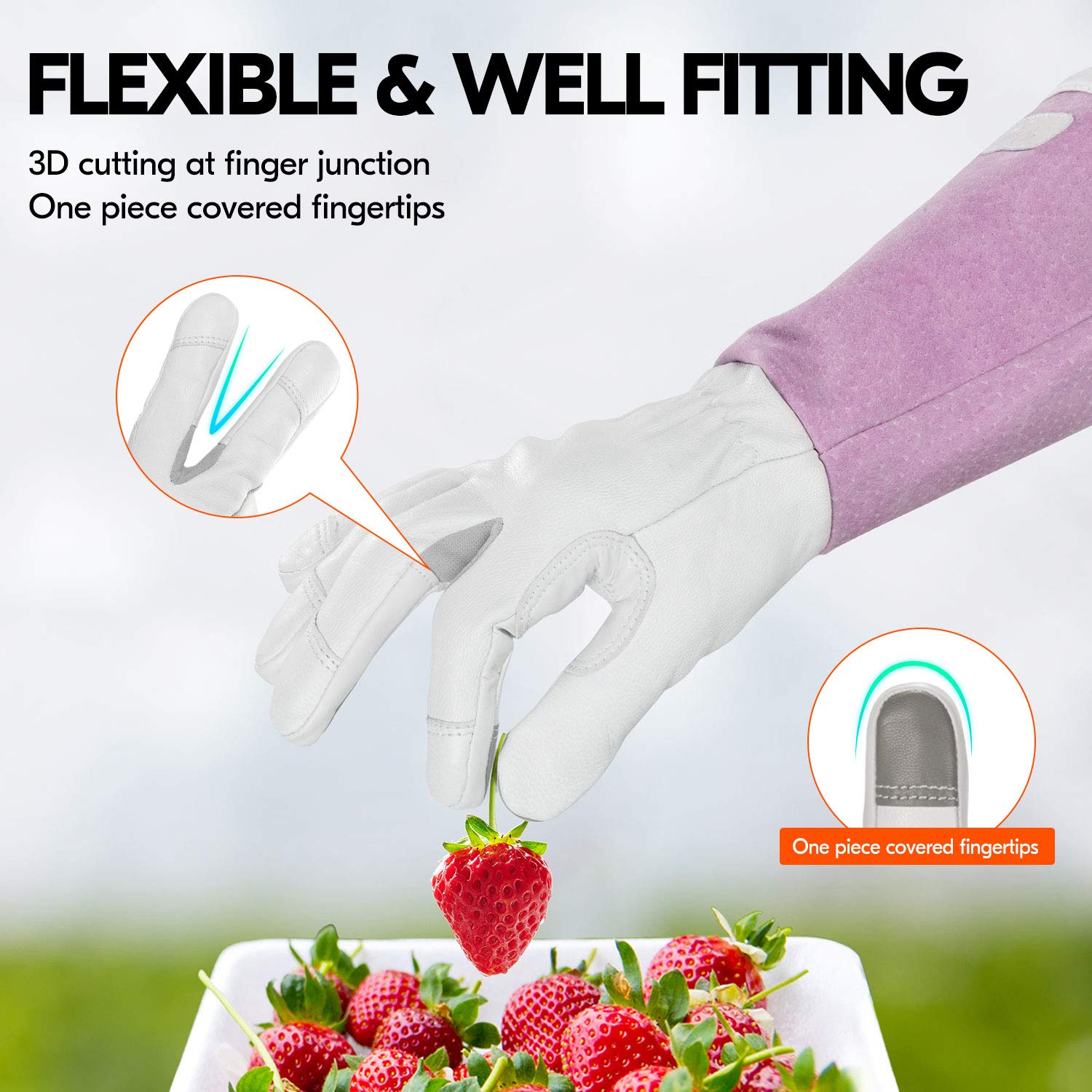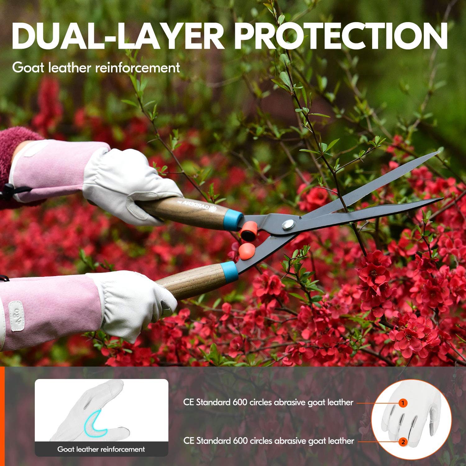 Vgo... 1-Pair Premium Genuine Goat Leather Extra-Long Cuff Thornproof Gardening Gloves (Size S, Pink White, GA1013)