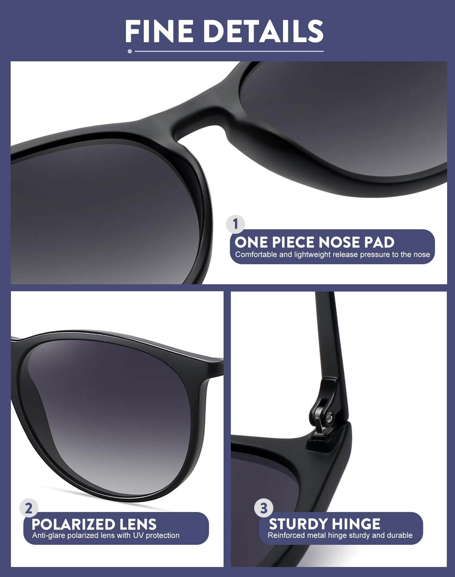 - POLARIZED SUNGLASSES UV400 -- These womens mens sunglasses Polarized lenses effectively to reduce glare and reflection, block the sun's harmful UVA & UVB rays without decreasing clarity or giving you any headaches. High-definition lens gives you a natural & clear vision, and keeping your eyes healthy.