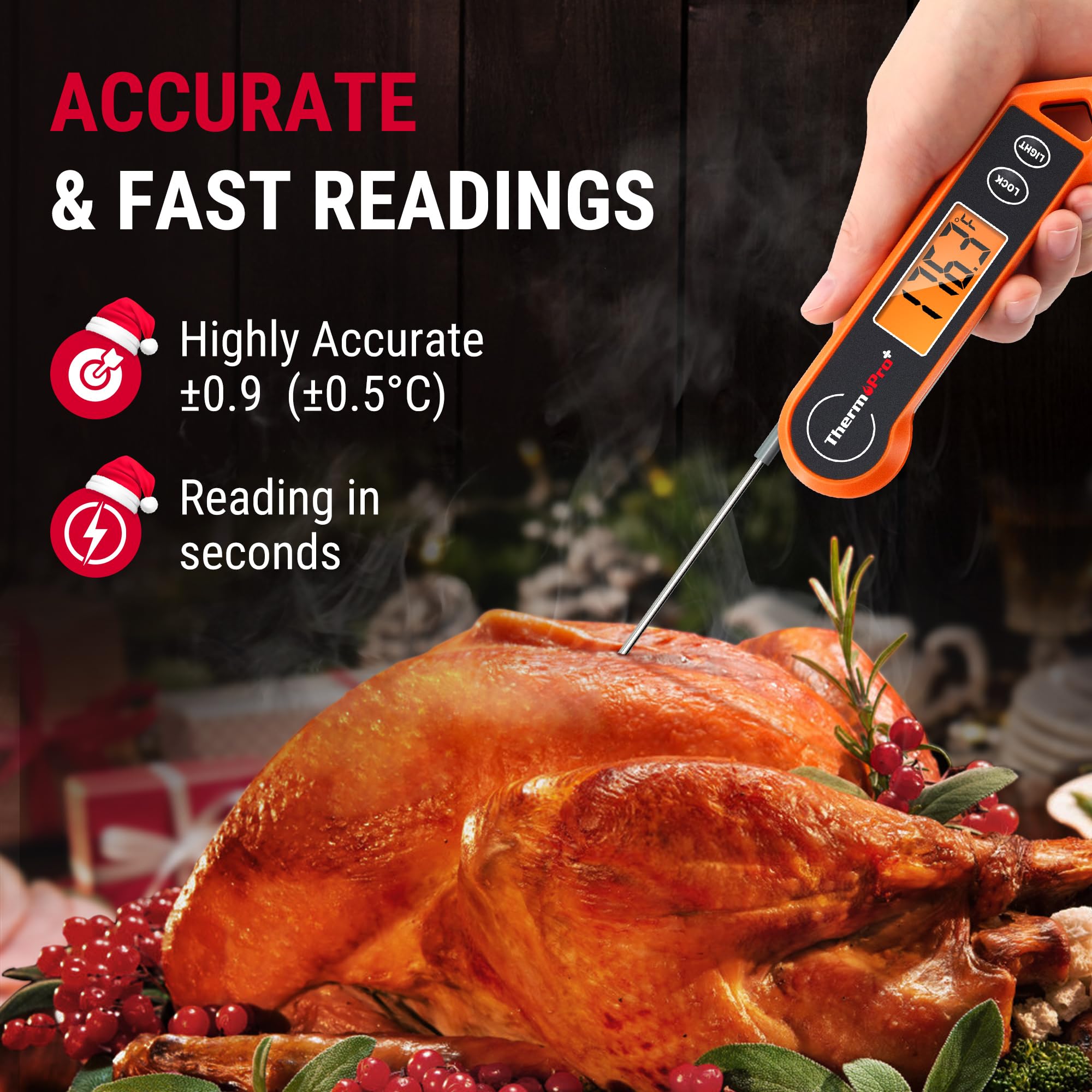 - 3-4 seconds ultra fast response time with highly accurate to ±0.9, instant read meat thermometer features 4.3 inches food grade stainless steel probe, suitable for measure any type of food temp with the cooking thermometer