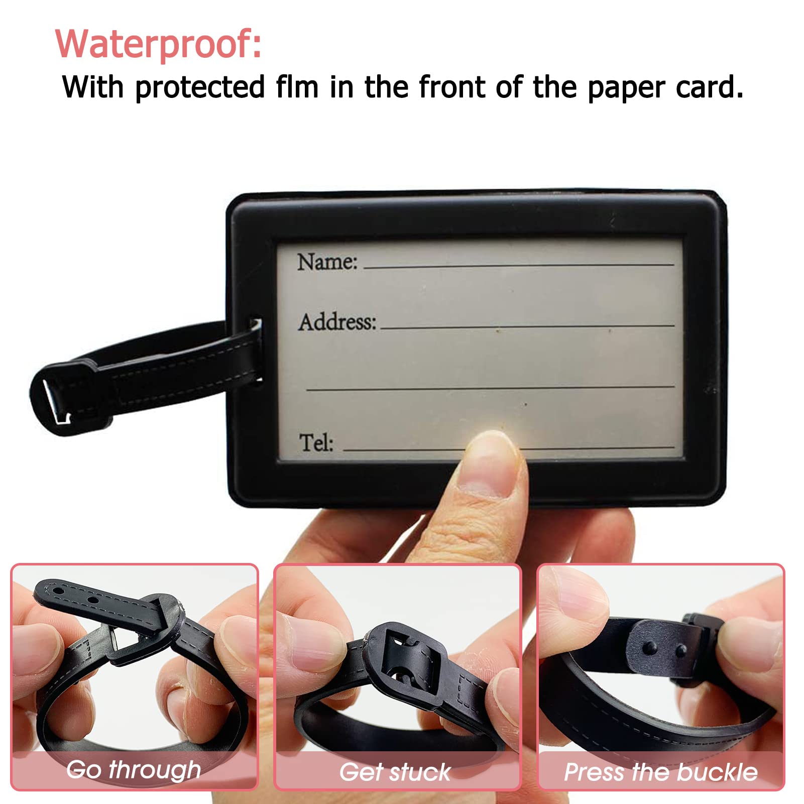 - Information Card: Cute luggage tags with replaceable information note for writing NAME and ADDRESS, easy tracking. The transparent waterproof cover to keep your information from getting wet