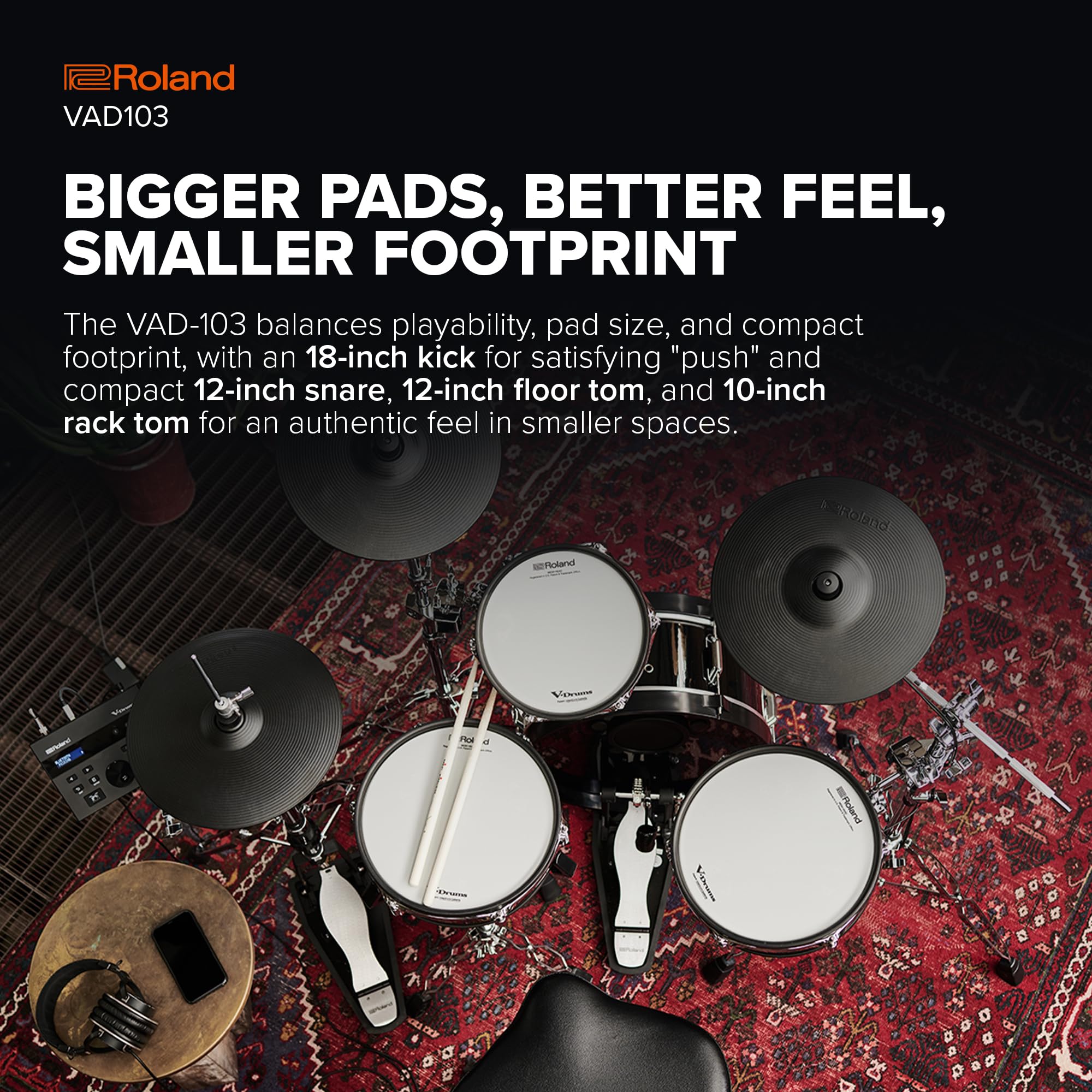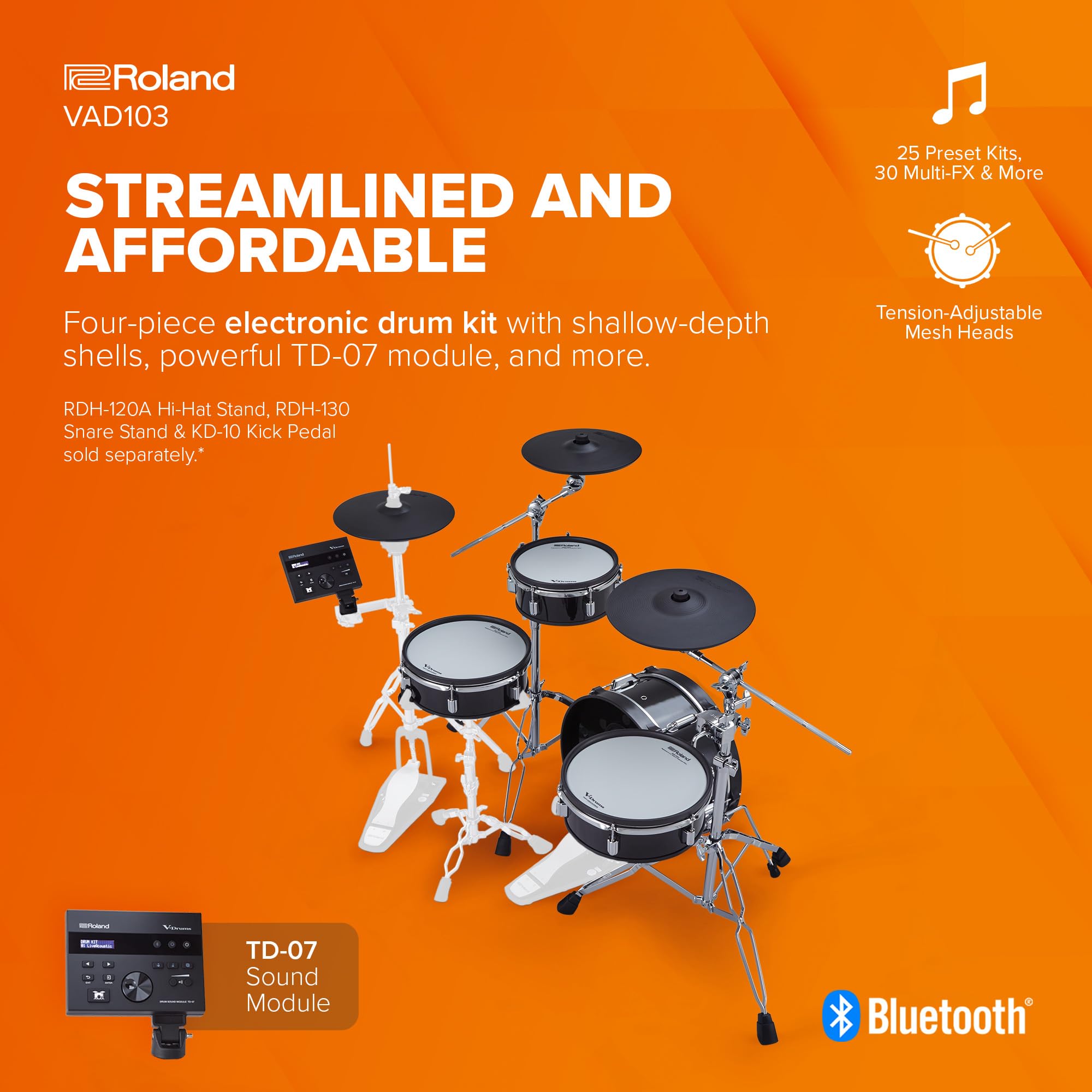 Roland VAD103 Premium 4-Piece Design V Streamlined Acoustic-Style Electronic Drum Kit with Shallow-Depth Shells and TD-07 Module (VAD103-1)