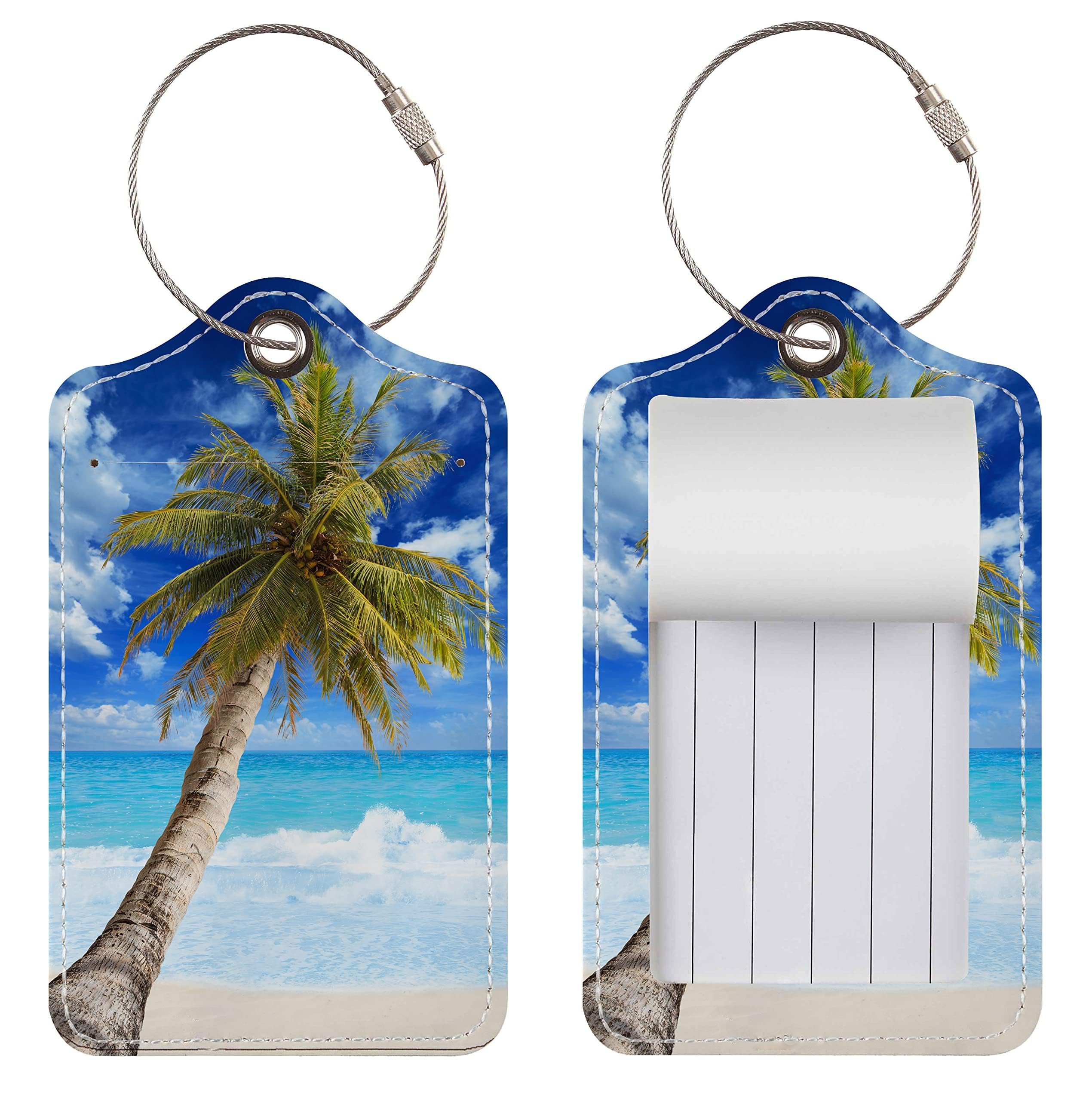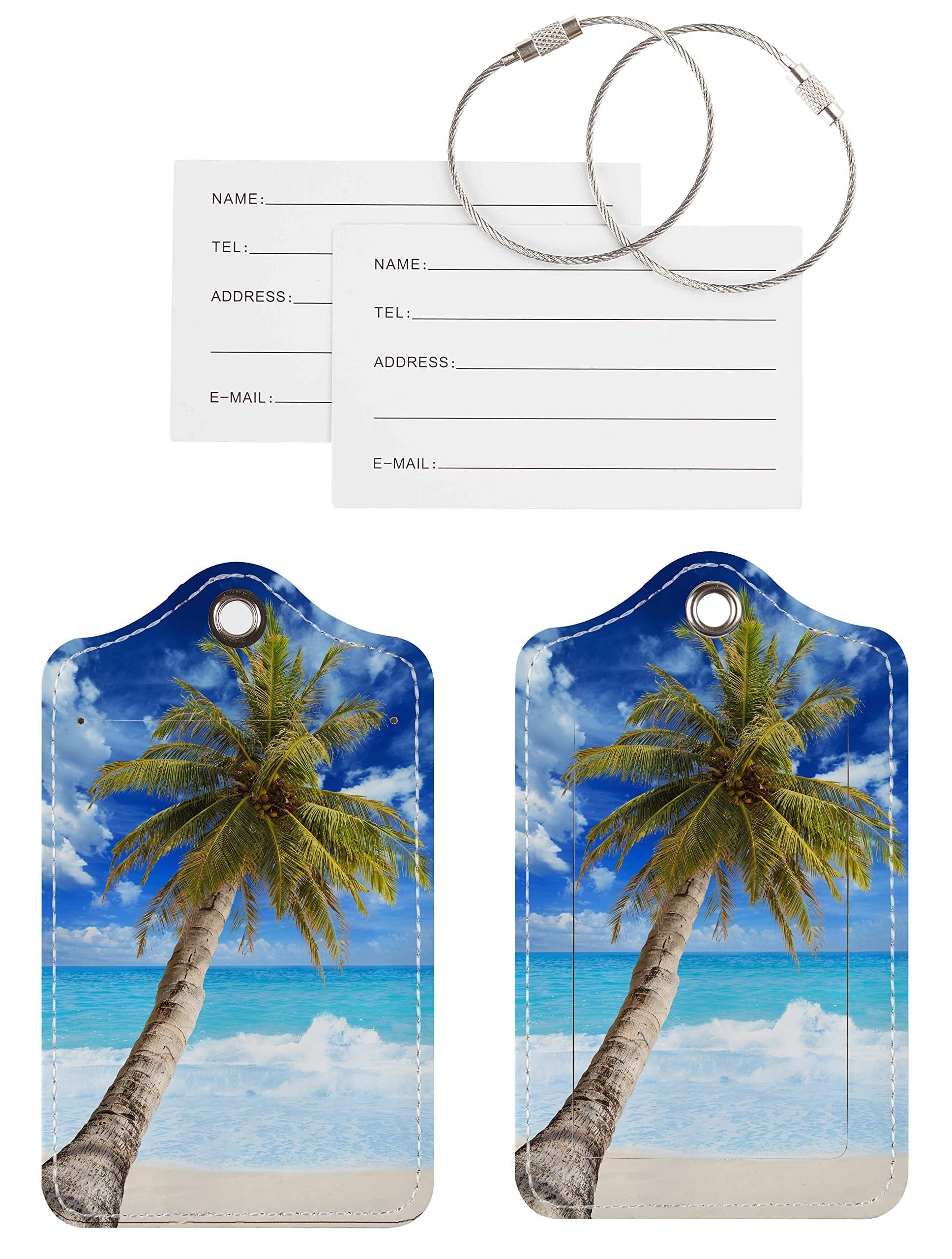 Luggage Tags for Suitcases, 2 Pack Cute PU Leather Suitcase Tag Identifiers TSA Approved with Stainless Steel Loop and Address Card for Baggage Tag for Cruise Airport Travel Essentials by Chelmon