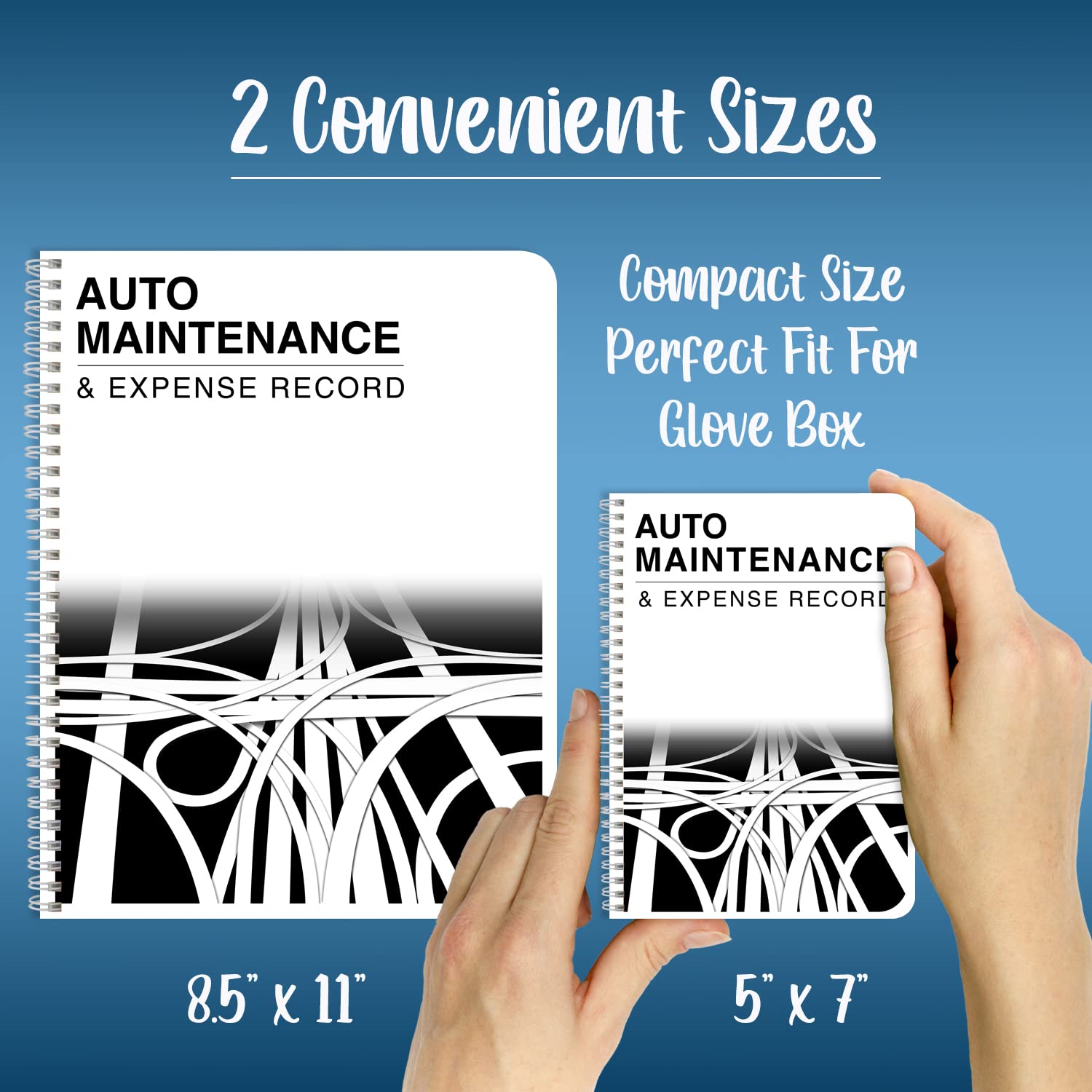 - This book comes in two convenient sizes, 8.5” x 11” – perfect to fit into any binder or clipboard that you may use for business and 5” x 7” which is the perfect size to fit into your glove compartment!