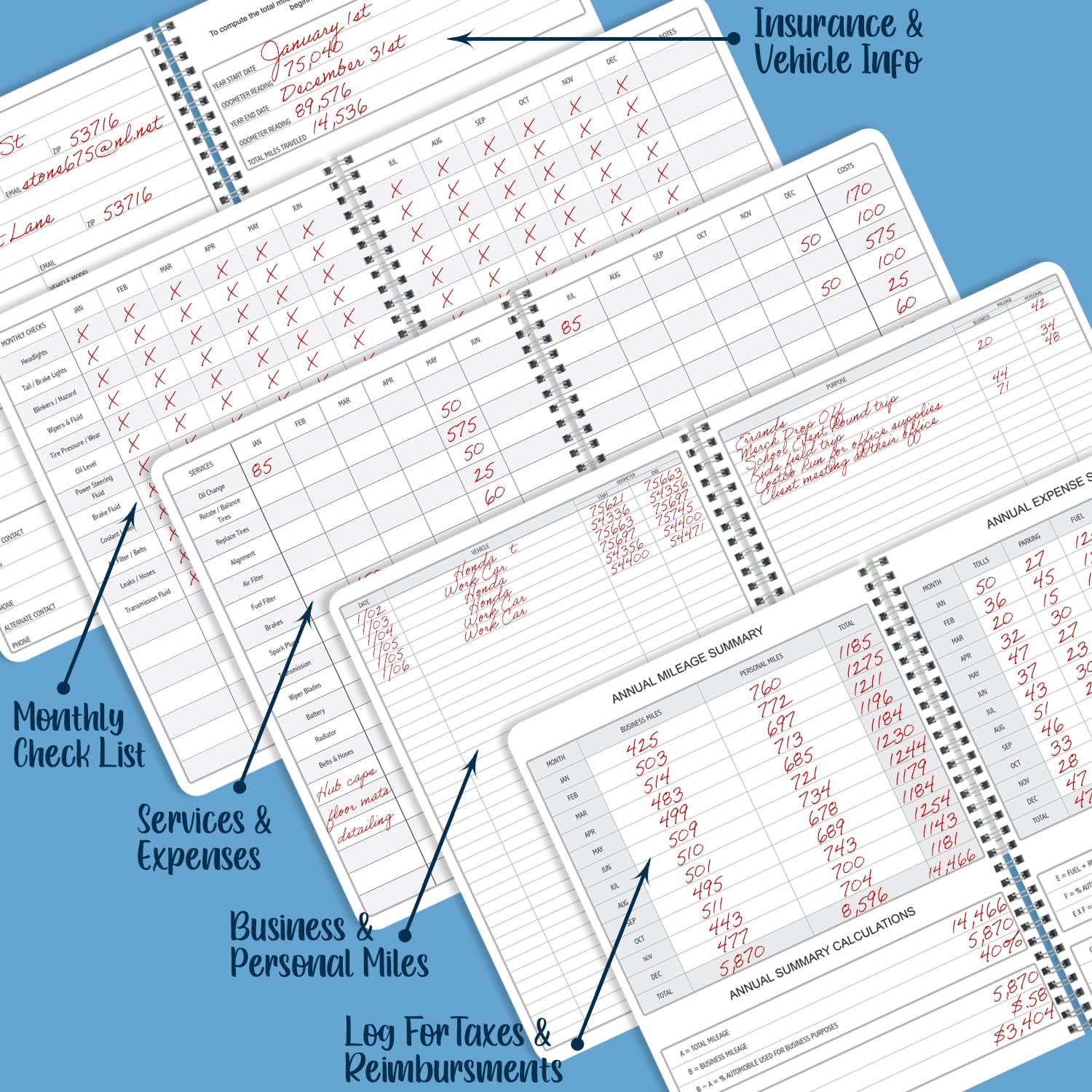 - The yearly expense summary is a very important part of this book. The yearly summary page is a perfect tool for your tax prep and your budget. After every month you should log your total business miles and personal miles in the “Annual Mileage Summary” page.