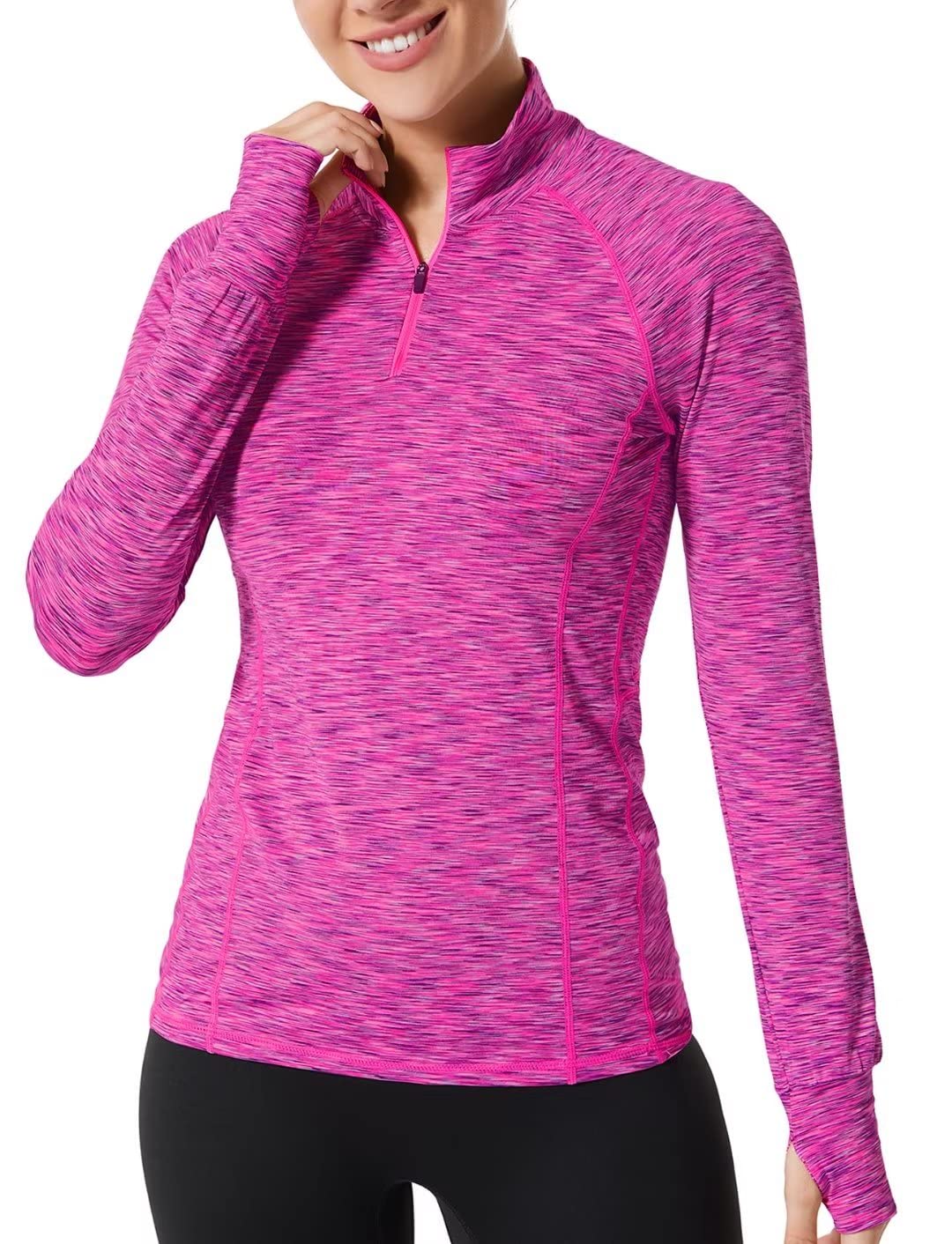 Zengjo Womens Quarter Zip Long Sleeve Workout Tops 1/4 Zip Running Pullover
