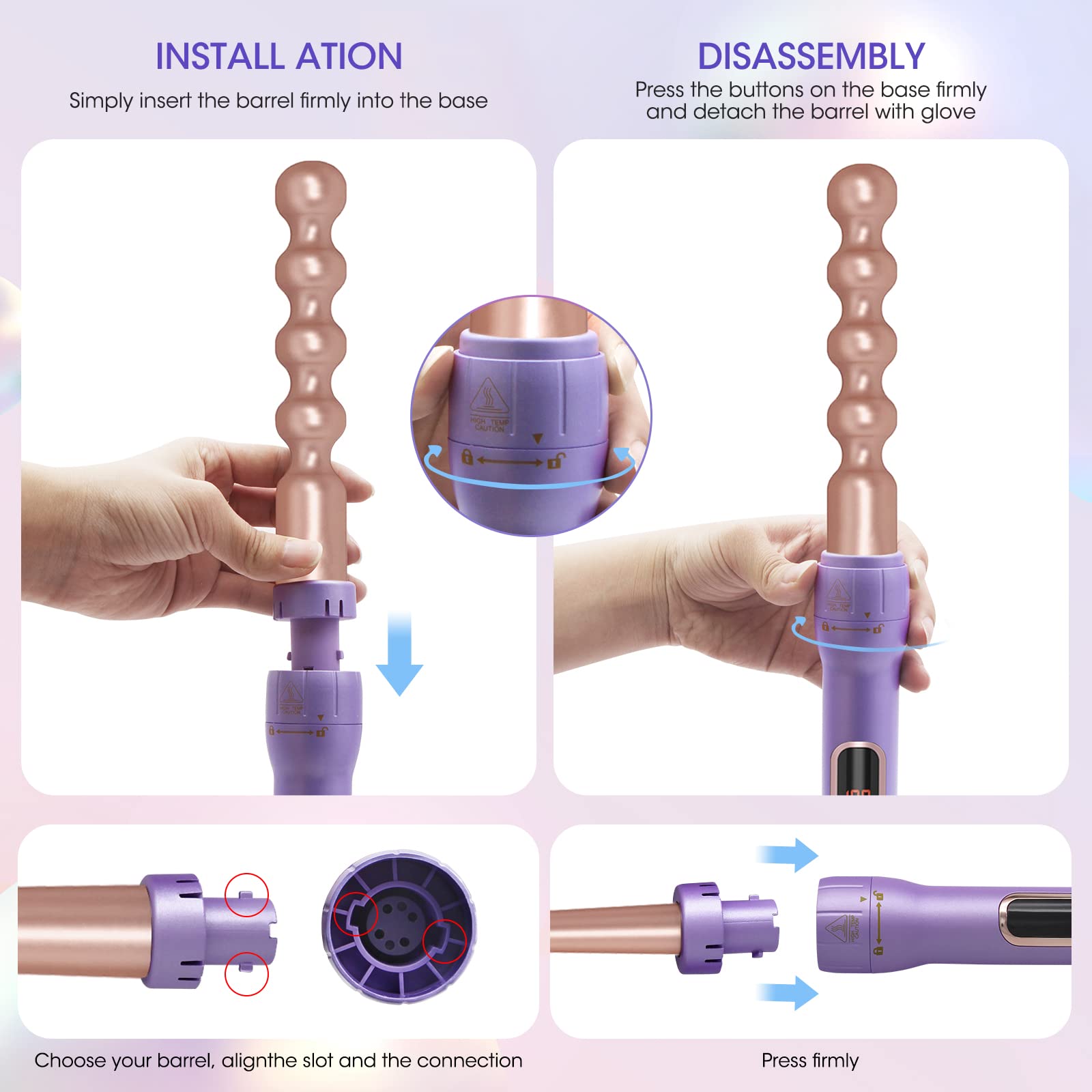 - Ideal Gift and Easy Application:This curling wand kit offers interchangeable barrels and a quick to install design that makes it easy to change the barrel making it the best gift for your mother, wife, girlfriend, daughter and friends. It is perfect for quality hairstyle ensuring a great styling kit for women for a hassle-free styling experience at home or on the go