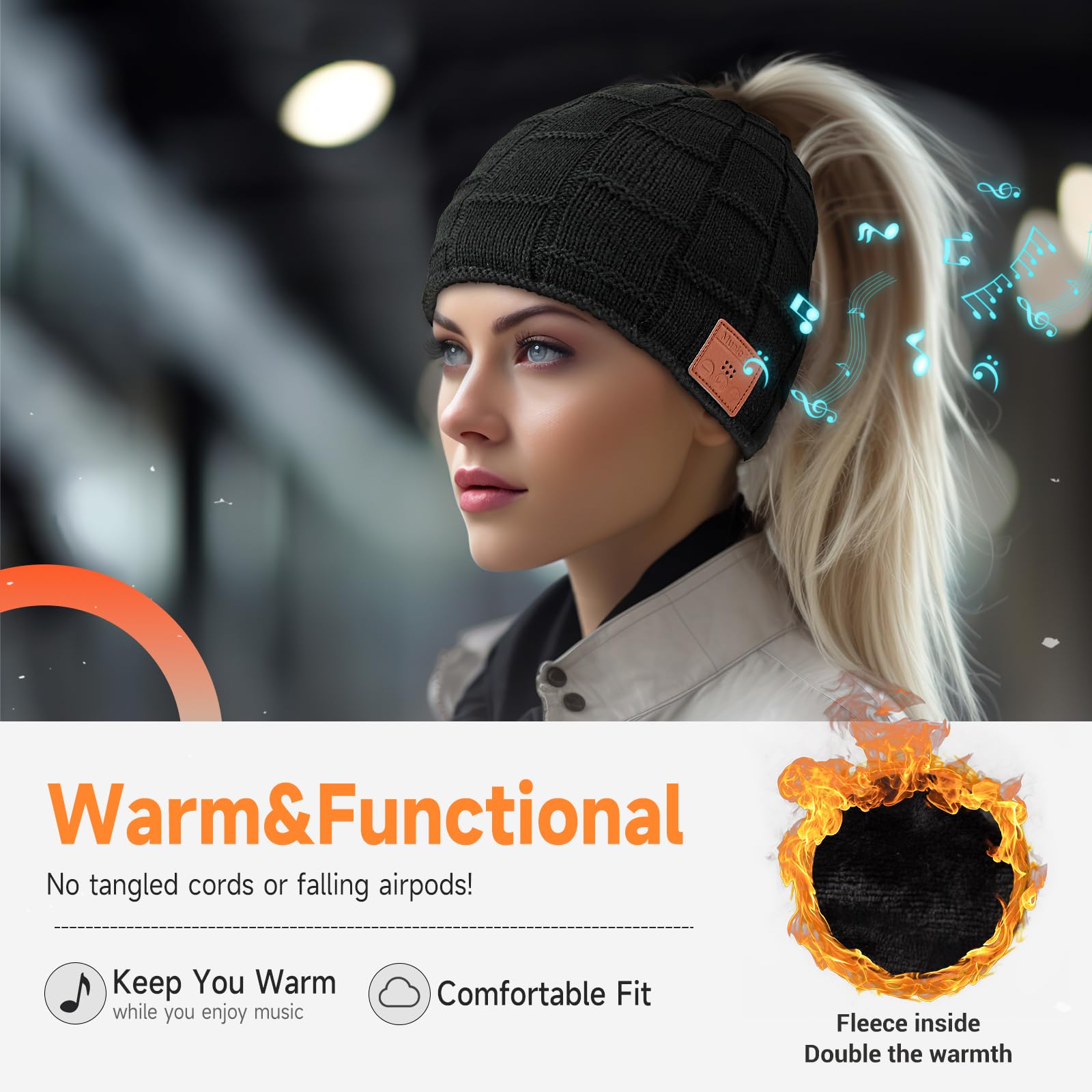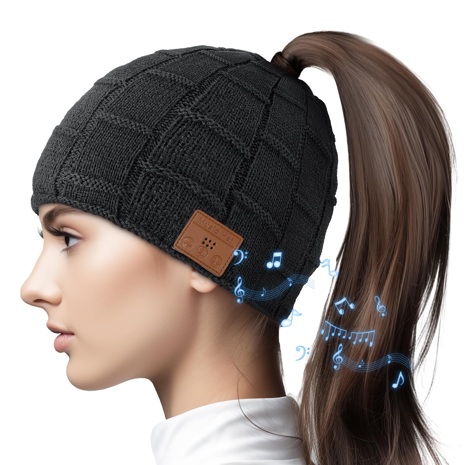 - 【Perfect Stocking Stuffers Christmas Gifts】Bluetooth Beanie hat is a functional and stylish gift for women or girls, it is the must have ponytail cap in the cold days. Winter comes, prepare an ideal gift for your family members, women her mom and anyone you love!
