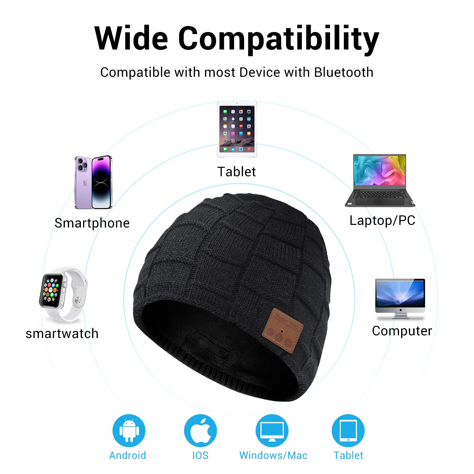 - 【Upgrade Bluetooth Chip Set】Our Bluetooth beanie hat with Bluetooth V5.0 technology offer the most stable and strongest connection with any Bluetooth-enabled devices and automatically connect to your last paired device. 33 feet wireless range, easy and fast to pair with your smartphone or tablet. Also 3-button easy CONTROL on music, calls, activate SIRI.