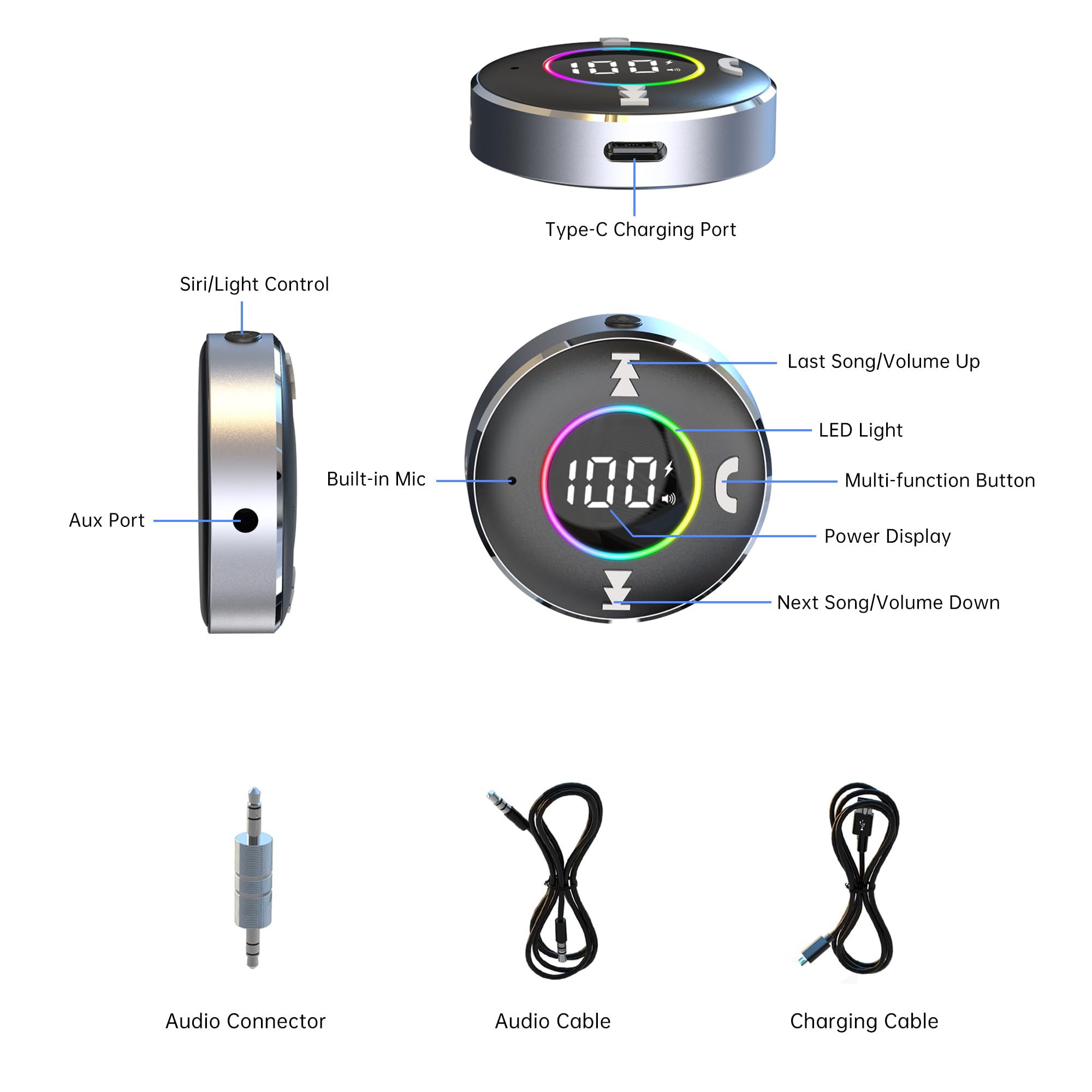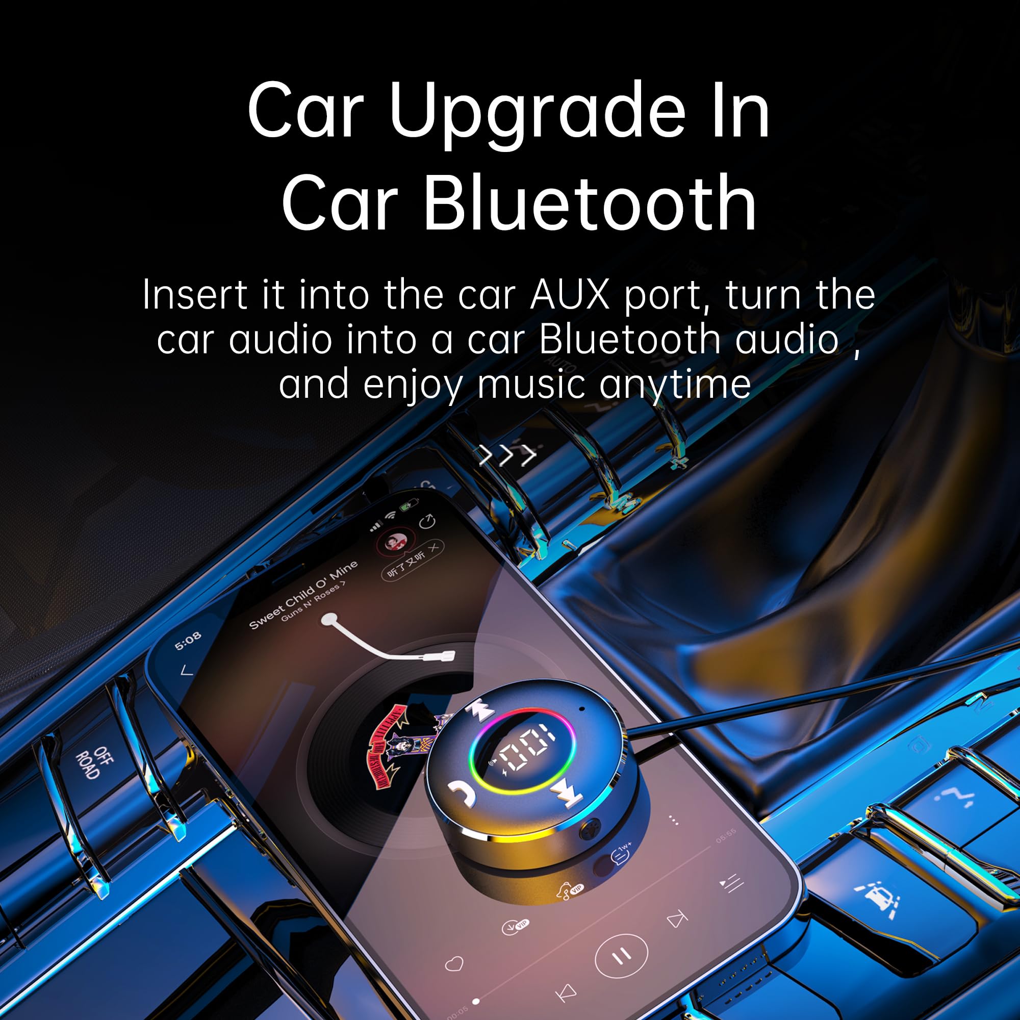 - 【Upgraded LED Digital Display】The Bluetooth receiver adopts a new LED display design, which displays the volume and real-time remaining power. Three levels of adjustable LED ambient light for you to choose from. It is very convenient for users to clearly check the status of the Bluetooth receiver even in the dark. If you don't like the colorful Ambient Light in the dark, you can also turn off the colorful Ambient Light by clicking the light button, which will also extend the battery life.
