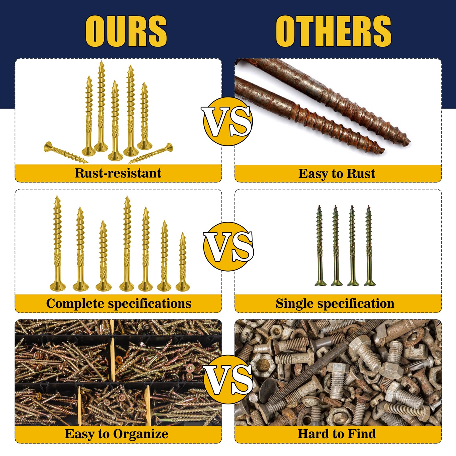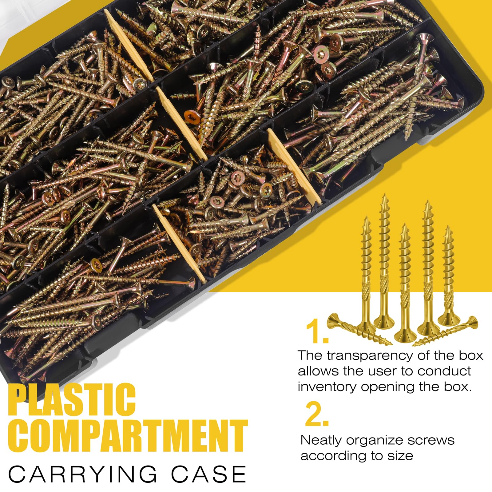- 【Wide Applications】: From decking to furniture and beyond, this wood screw set is suitable for a wide range of woodworking applications, making it an essential addition to both professional carpenters' and DIY enthusiasts' toolkits.