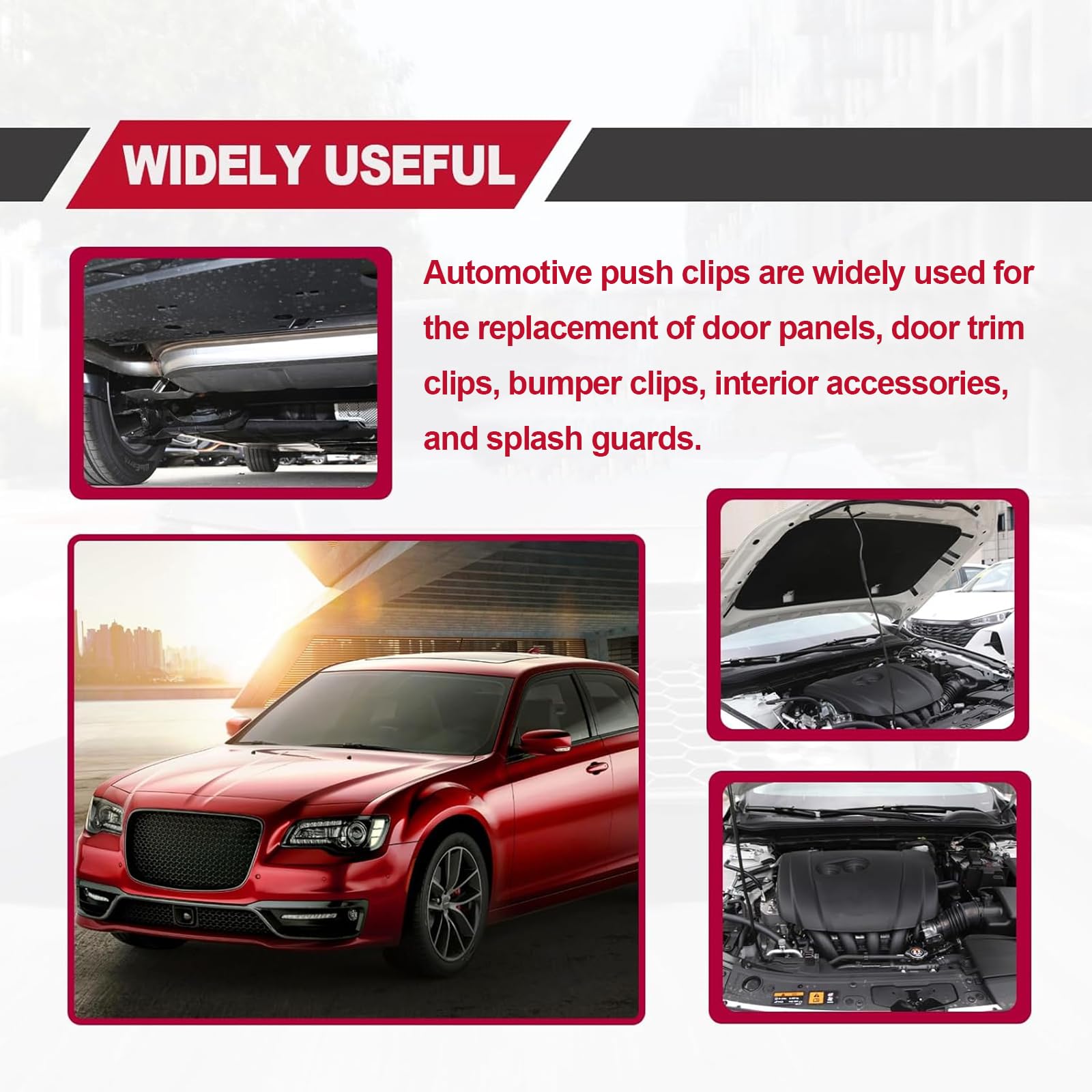 - 【24 MOST POPULAR SIZES】This kit contains 24 of the most common fastener clamp sizes and most popular sizes are suitable for BMW Honda Nissan Subaru Benz Toyota Benz Toyota Audi Mazda Ford GM Chrysler.