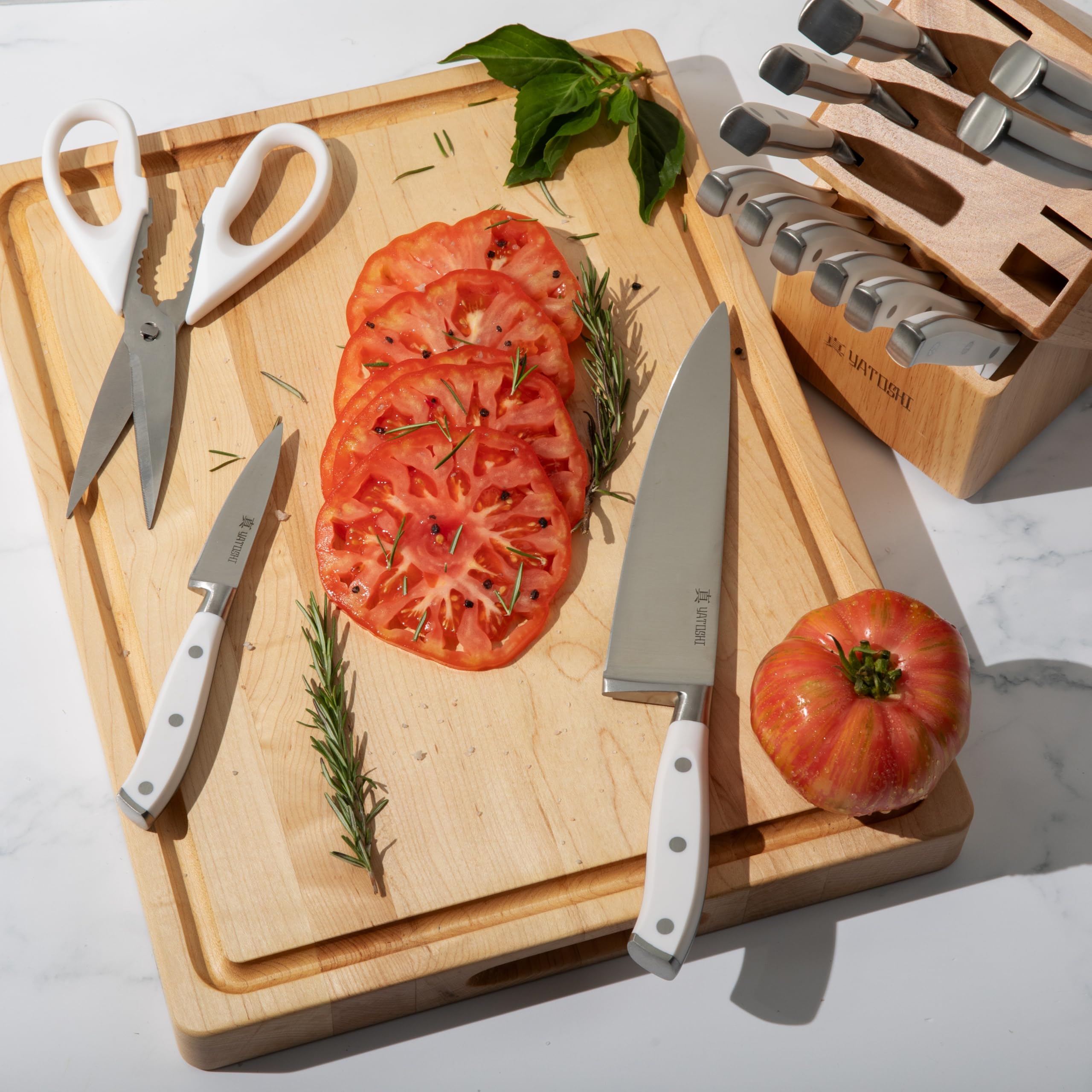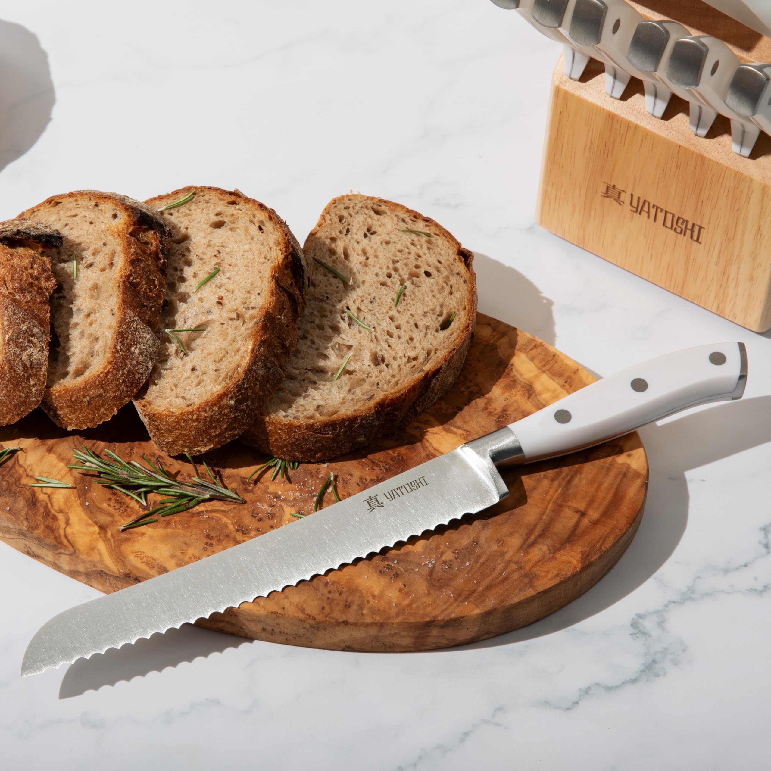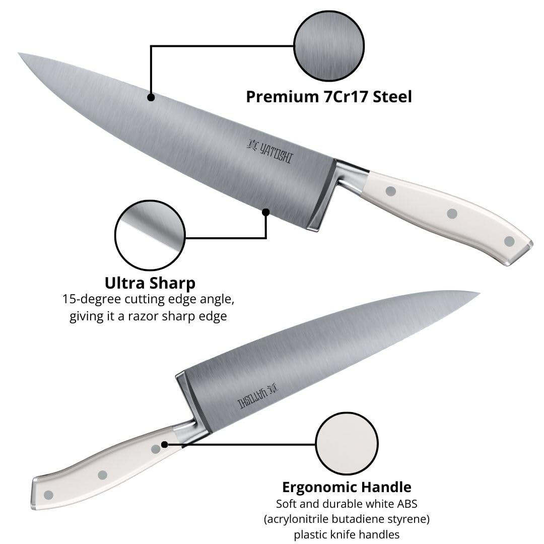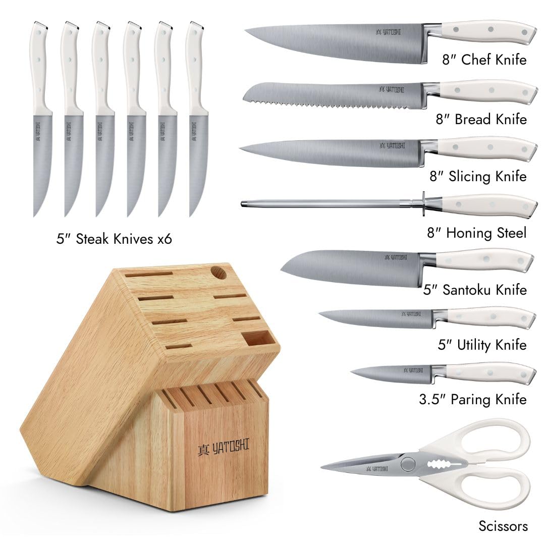 Yatoshi 15 Piece White Knife Block Set - Pro Kitchen Knife Set Ultra Sharp High Carbon Stainless Steel with Ergonomic Handle