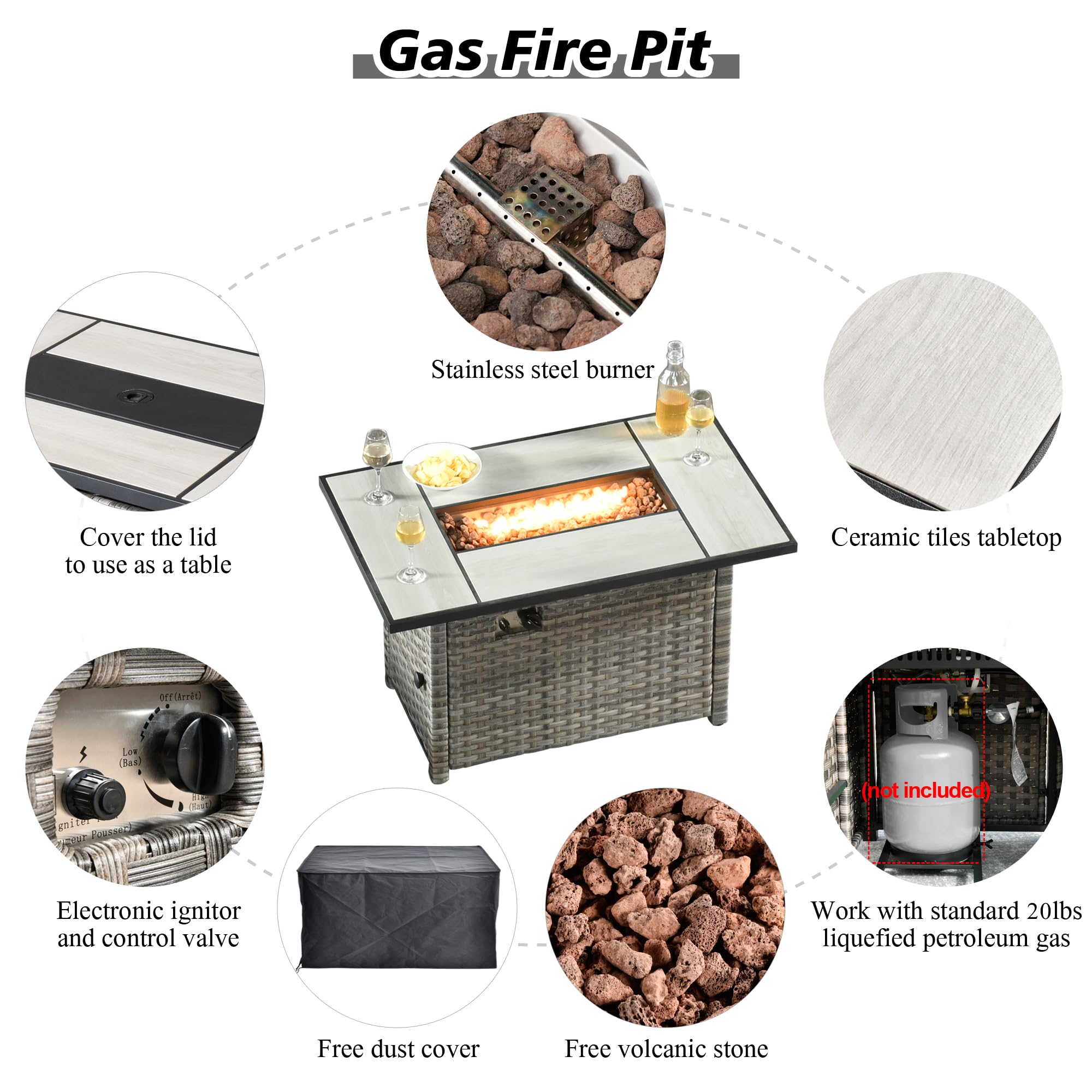 - FirePit Table Included: Comes with a square convertible propane gas fire pit table. Night time use it as a fire pit table to add atmosphere. Day time use it as a tall Dining table with the burner lid. Stainless Steel Burner withstands all weather. CSA certificated for safety.