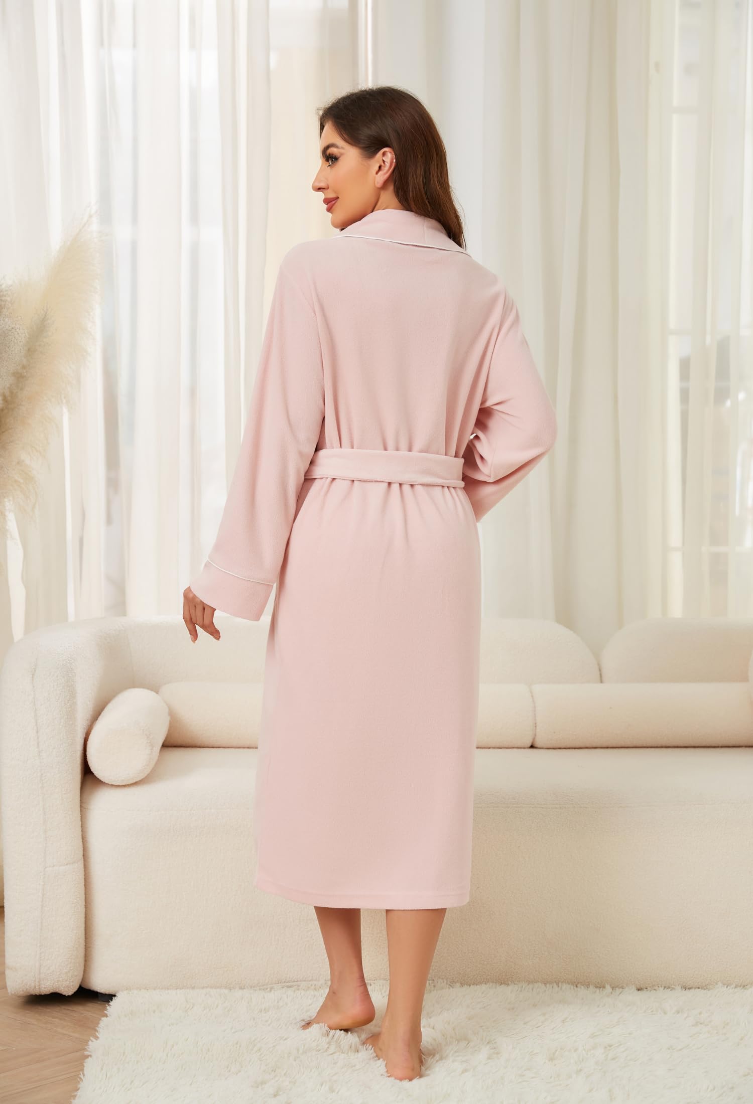 EK4YDNDS Women Lightweight Fleece Robe, Soft Long Shawl Collar Bathrobe for Women
