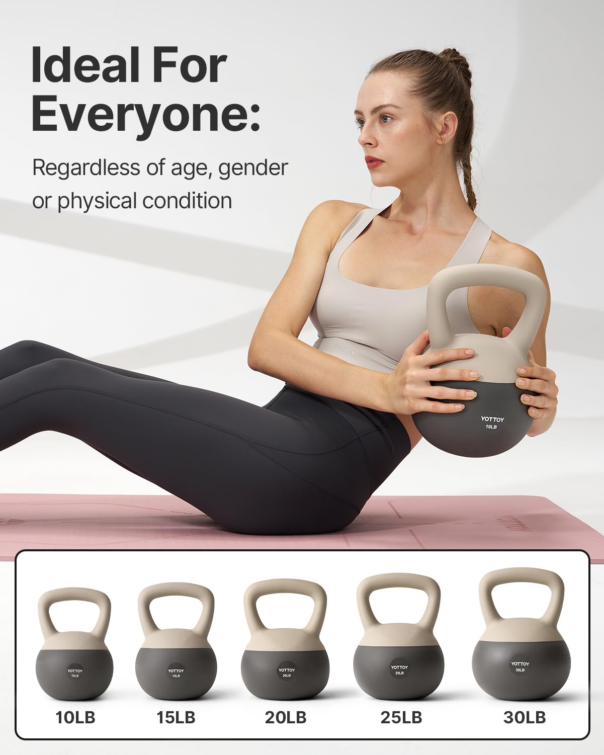 - 1.Shock-Absorbing Soft Kettlebell Base: Our YOTTOY soft kettlebell features a sand-filled base to reduce impact, protecting your floors while minimizing noise. This makes it an ideal choice for strength training kettlebells, ensuring a safe and comfortable workout experience