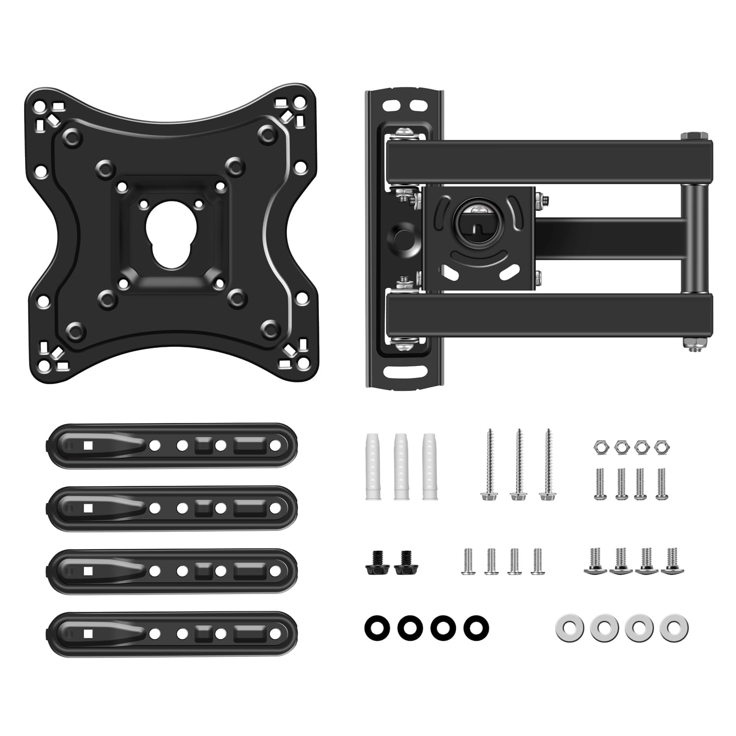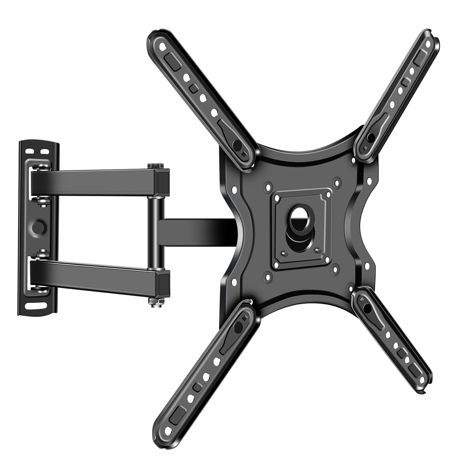 Swivel TV Wall Mount for 14-55 inch TVs Our this monitor wall mount can be tilted +5°/-8° to prevent glare, and it can be rotated up to 90 degrees, you can adjust the TV angle according to your needs, bring you a comfortable visual experience! Specification: Color: Black Load capacity: 55 pounds (25㎏) Package include: 1*TV stand, 1*Instruction manual 1. Stable & Load-bearing capacity: the TV brackets for wall mount is designed with a three-arm load-bearing structure and made of heavy-duty aluminum and steel, which can hold up to 55 pounds (25 kg), safe and reliable, not easy to fall off, and can better protect your TV. 2. Space Saving: The 55 inch TV wall mount extends 17 inches(43cm) and retracts back to 2.0 inches(5cm) to save your space. 3. Easy to Install: This full motion TV mount comes with various hardware and installation instructions, easy to understand, you can assemble it easily according to the instructions. 4. Wide Application: this outdoor TV mount is suitable for a variety of settings and flexible to install, you can install TV holder in your bedroom, living room, hallway, office, etc. to meet your daily life!