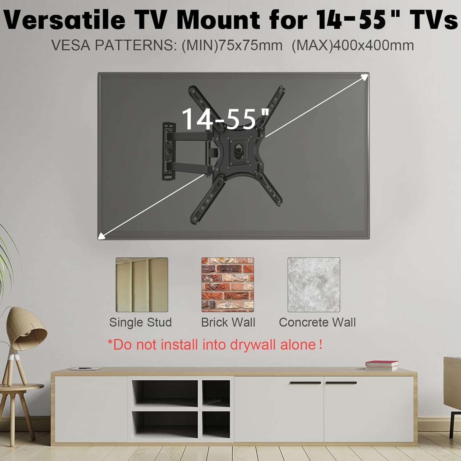 Swivel TV Wall Mount Full Motion TV Bracket with Articulating Arm for Most 14-55 Inch LED, LCD Flat Curved Smart TVs Monitor Tilt Extension Rotation Corner TV Mounts Max VESA 400x400mm Up to 55 lbs