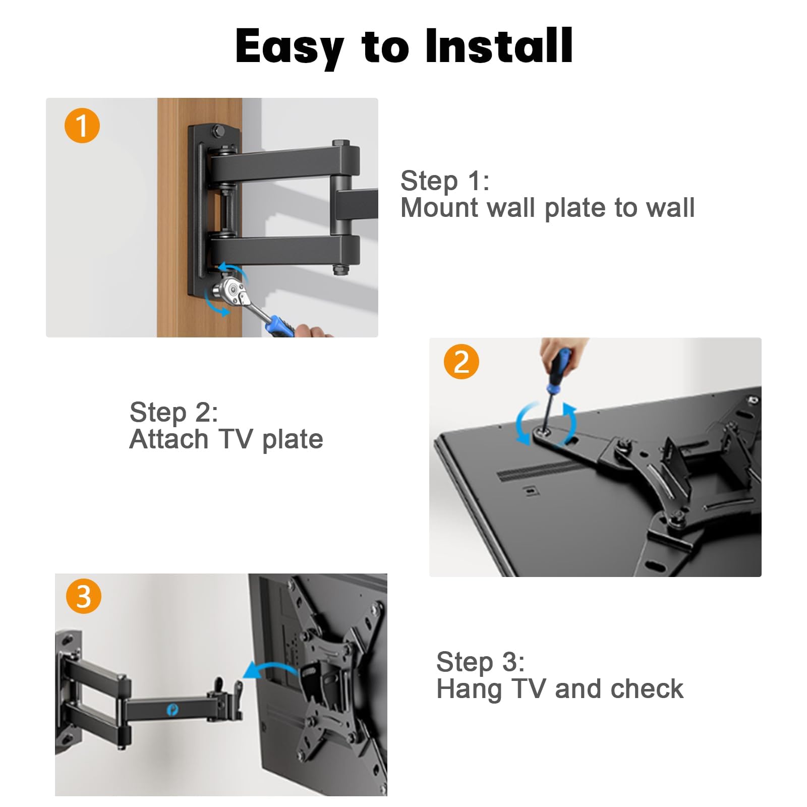 - Efficient Service: The construction, strength and durability of this swivel tv bracket are excellent, making it ideal for home management. Meanwhile, our professional customer support team is available to answer your pre-purchase and installation questions about the hang smart TV mount.