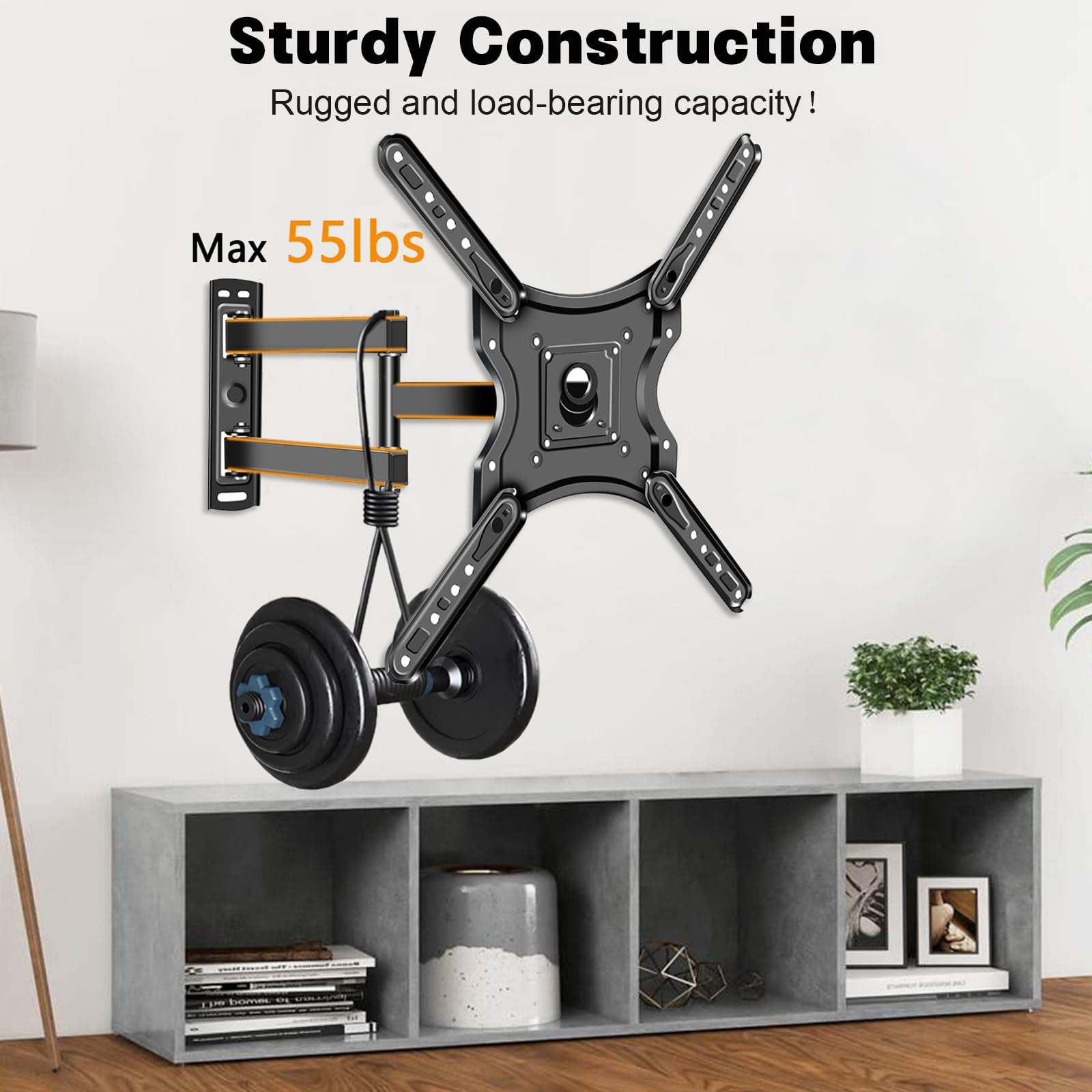 - Solid & Durable Wall Mount TV Bracket: TV mount is made of heavy-duty aluminum and steel for reliable strength, durable and not easy to deform. Thickened articulated arm and technology of robot welding makes the whole monitor wall mount stronger and safer, with strong load bearing capacity up to 55 lbs (25 kg).