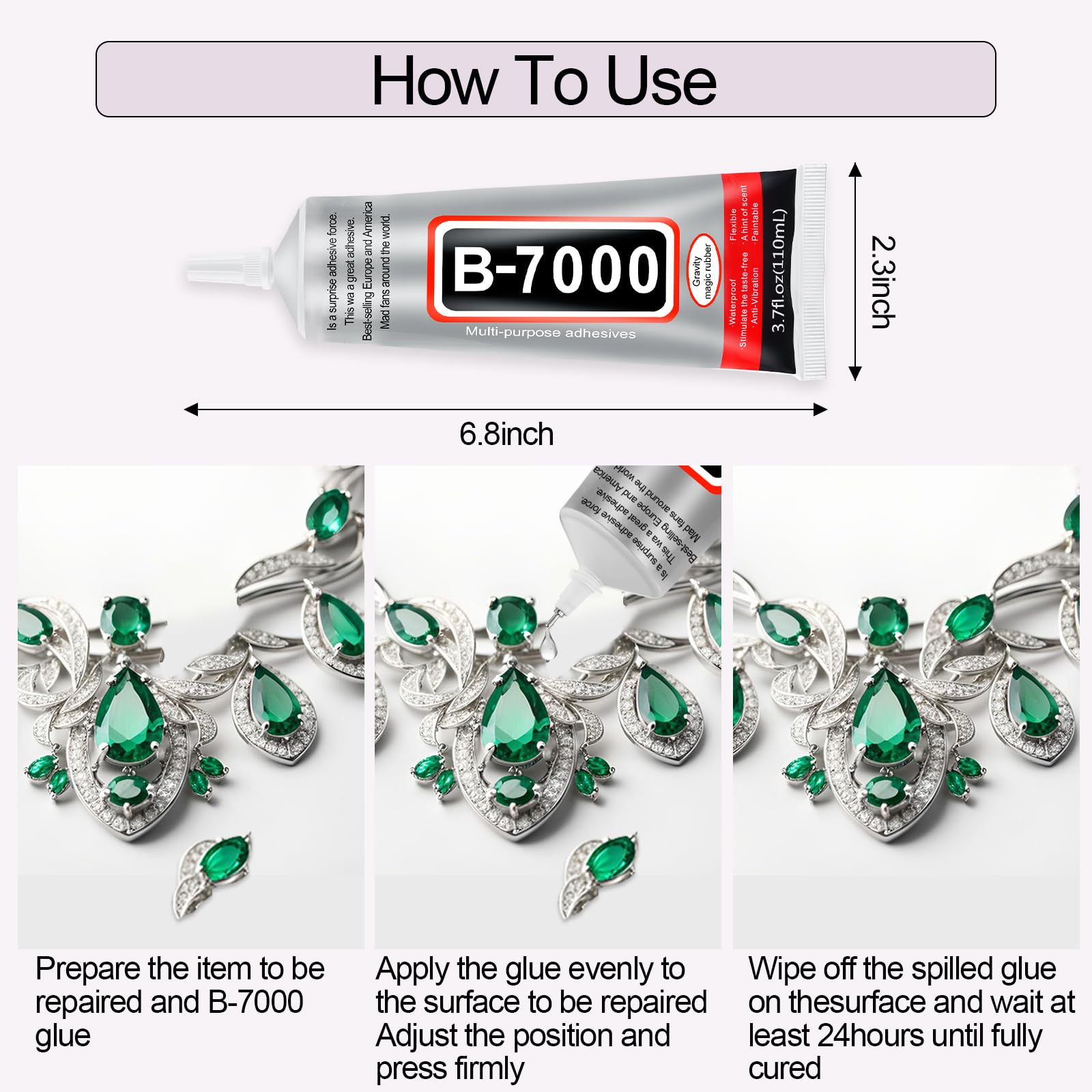 - 【Multi-Purpose Adhesive B7000 Glue】-This multipurpose craft glue works well on most surfaces, which is great self-leveling adhesive for jewelry making, nails art, toys repair, phones screen, tablet, small electronic components (like Bluetooth headsets), metal, glass, leather, rubber, fiber, paper, ceramics, wood, cloth, textile, nylon, PVC, leather, household uses and other crafts repair purposes.