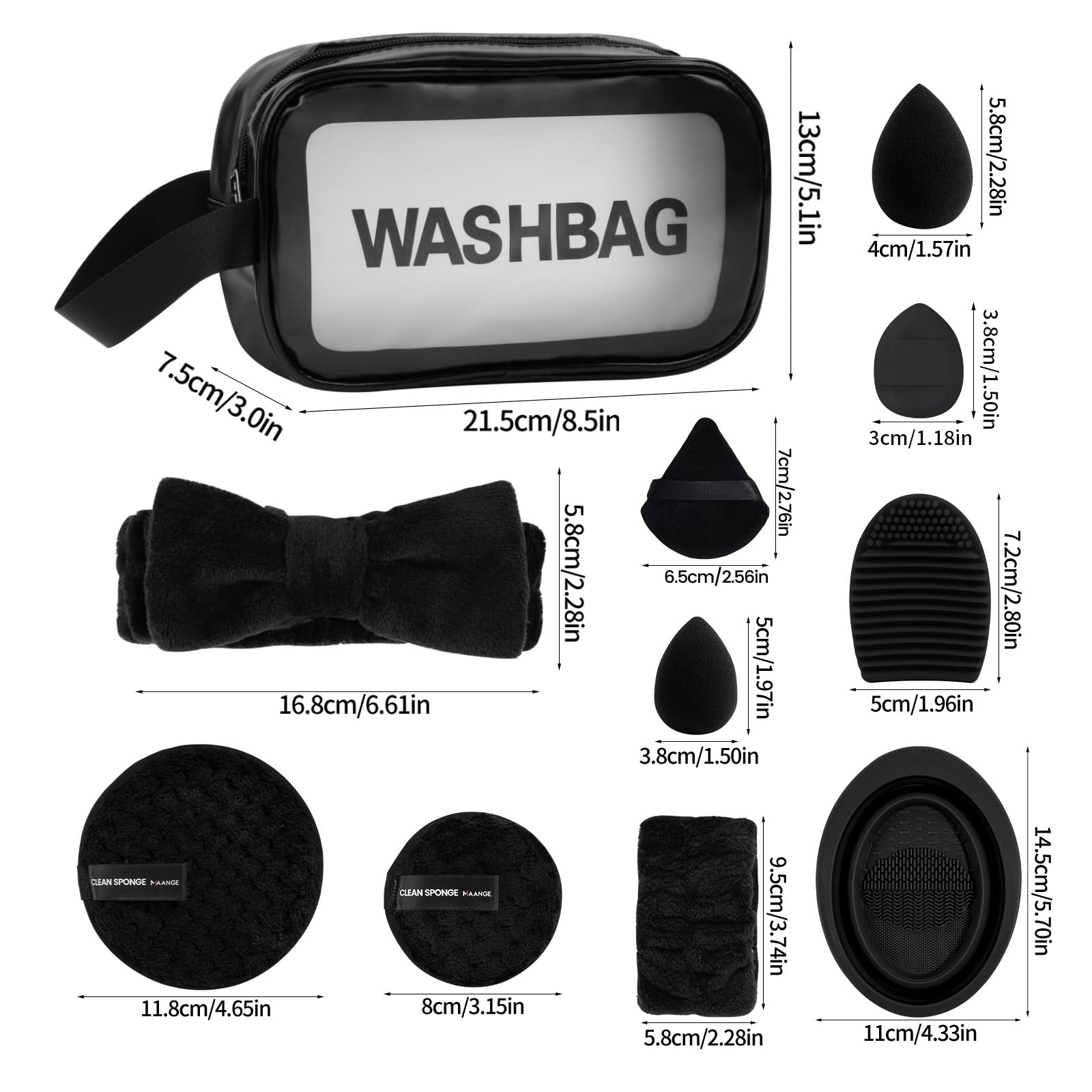 - Package Included: 32pcs Professional Makeup Brush Set With a Velvet Bag, 5pcs Makeup sponges, 5pcs Triangle Powder Puff, 3pcs Mini Thumb Puff, 2pcs Big & Small Makeup Remover Puff, 2pcs Cleaning Mat, 3pcs Face Wash Headband Wristband Set and a Toiletry Bag.